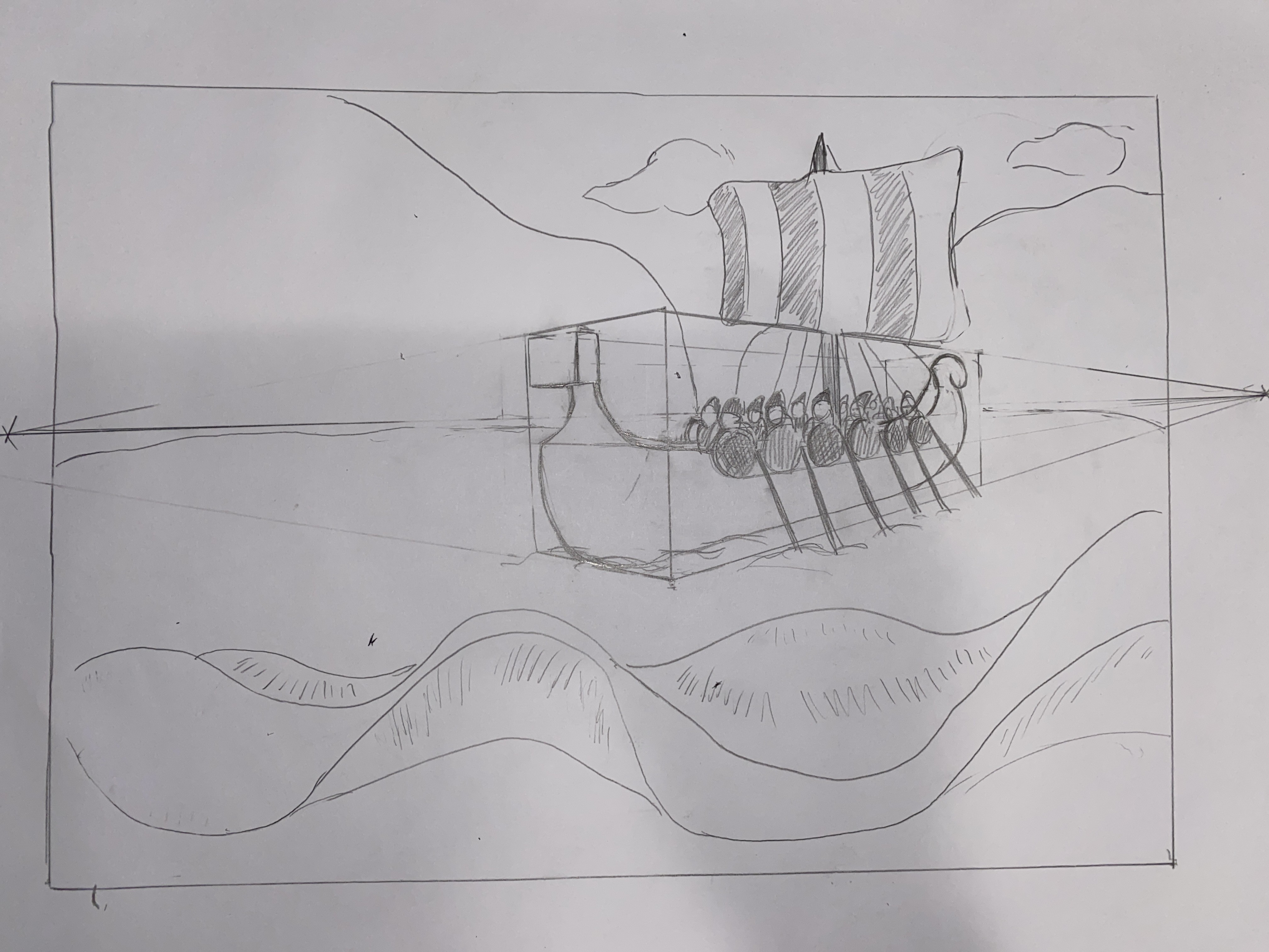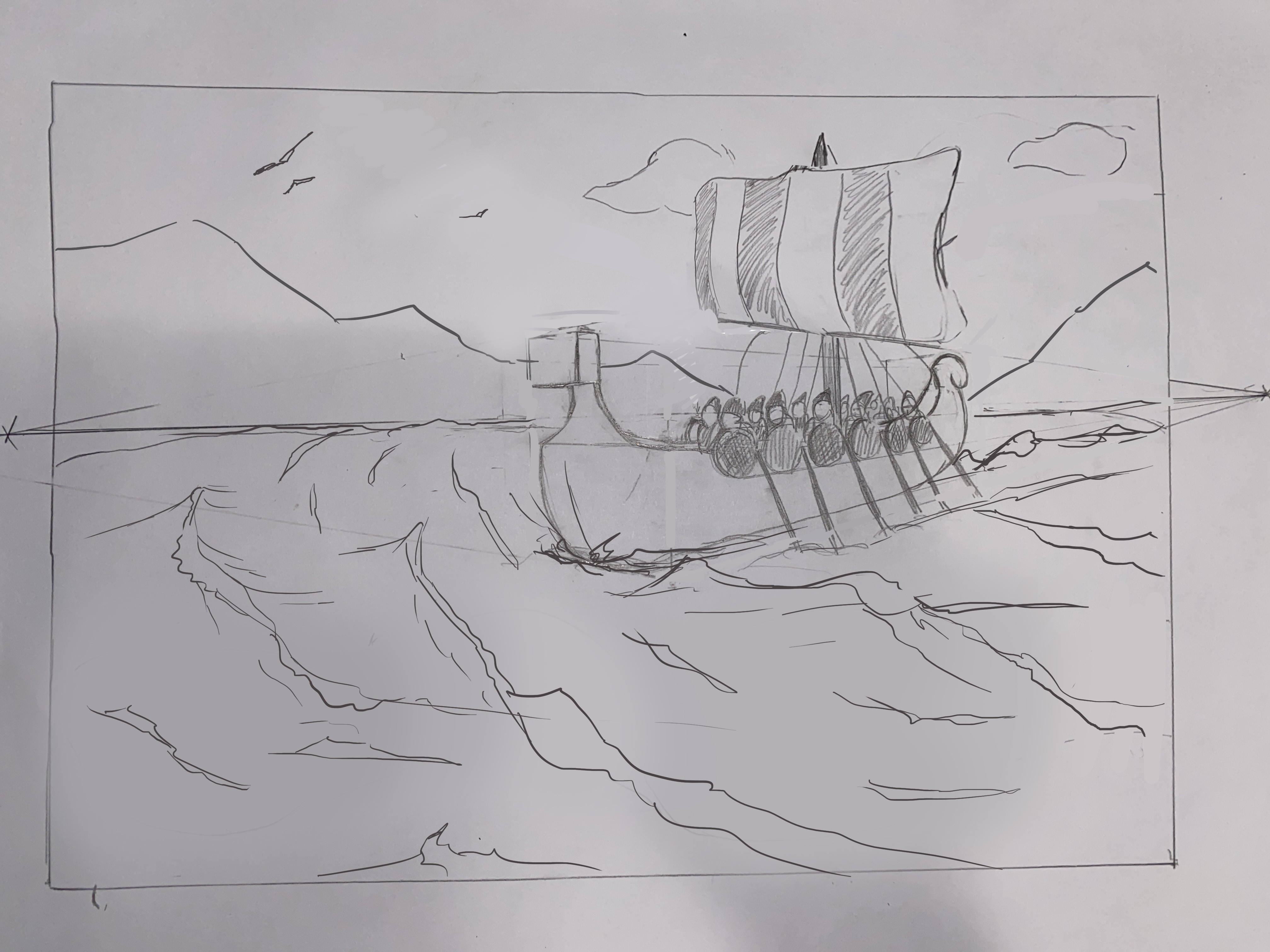 Les bâtiments je pense avoir compris Ducoup j’ai essayé de prendre des risques en faisant un bateau pirate viking. J’ai laissé quelques traits de constructions faire comprendre comment j’ai procédé. Je pense que j’ai du faire pas mal d’erreurs j’attends de voir vos retours s’il vous plaît.
