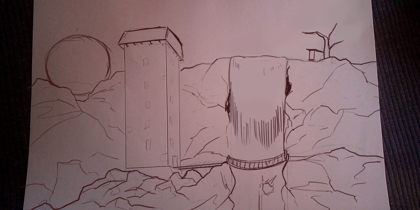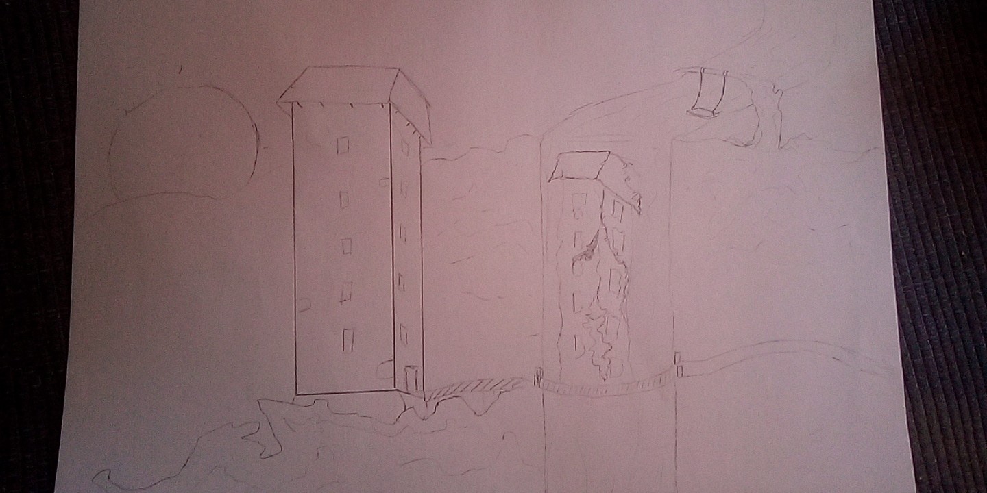 Bonjour voila mon dessin sans les pochades. J'ai gardé l'idée de tour de Grégoire puis l'ai ré-adapté à ma sauce... J'espère que c'est à peu pres correct