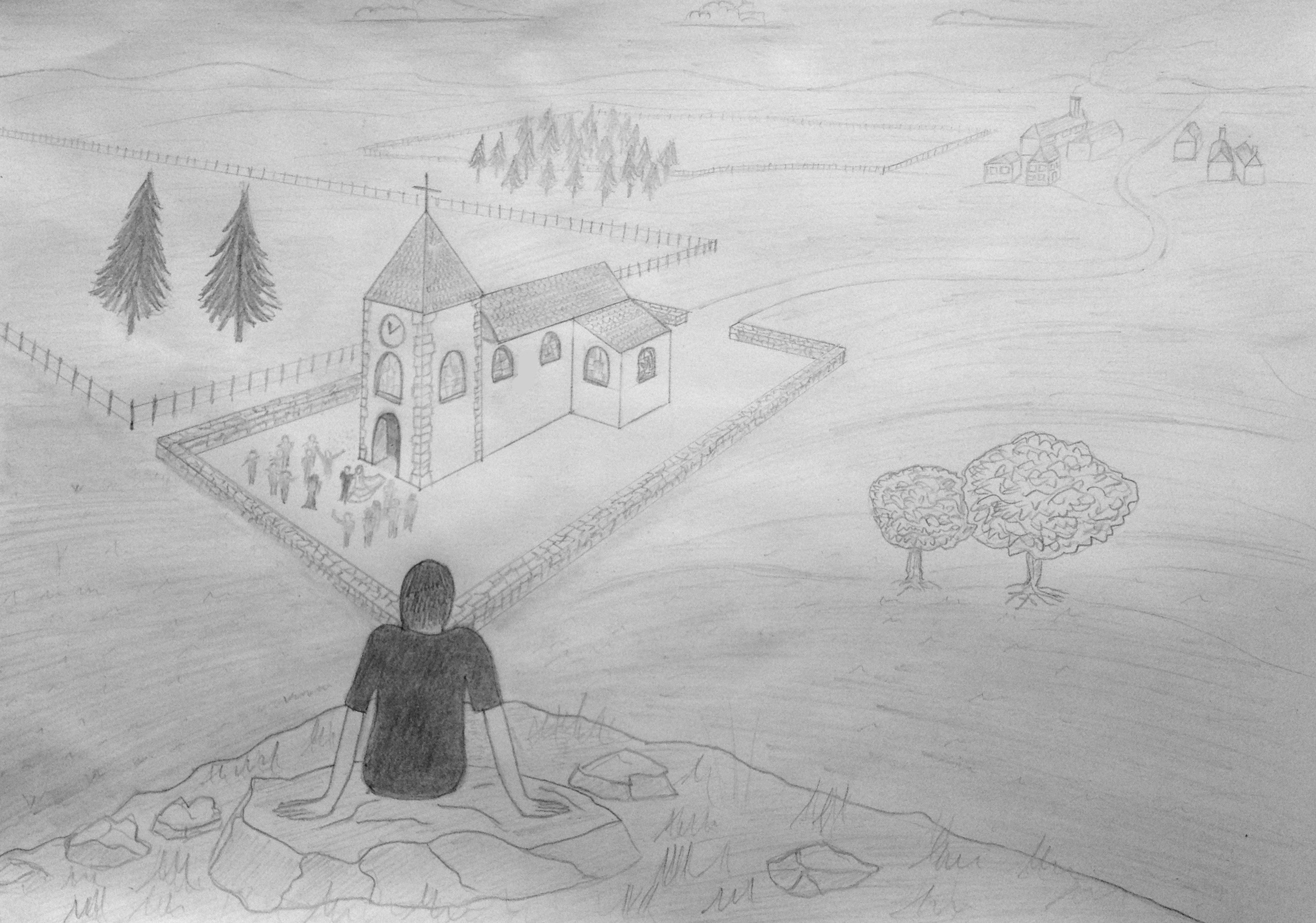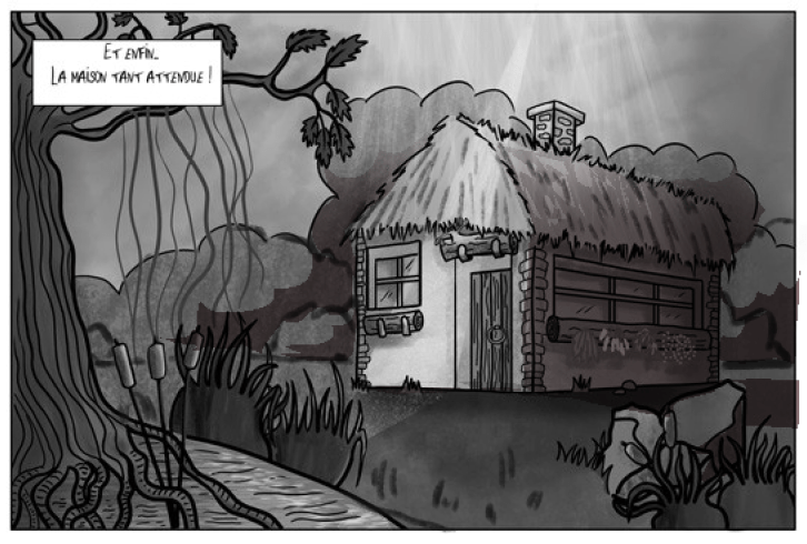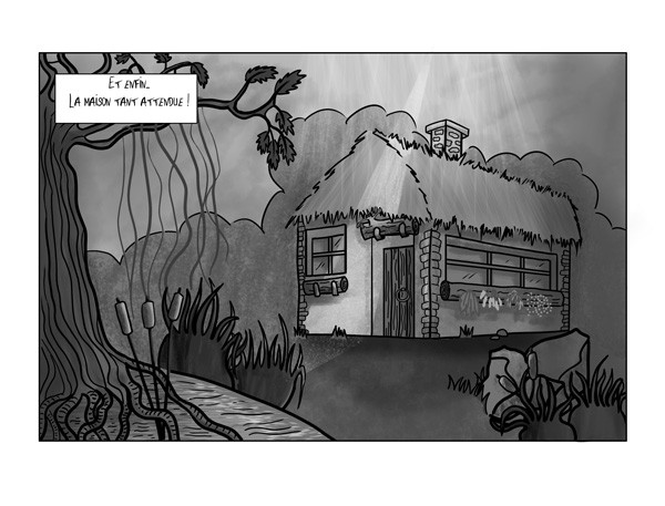 A savoir que la maison est sur un tertre de terre, et effectivement j'ai encore du mal à faire ressortir les volumes dans mes dessins d'imagination.