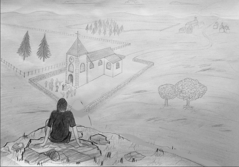 Les hachures pour les grandes étendues herbeuses ca fonctionne. Je pense qu'il faudrait que tu travailles plus dans le détail ton premier plan : le personnage sur la pierre et 'herbe et les cailloux autour : il faut que sur ce plan tu travaille plus les ombres des différents éléments, que les tracés suggérant l'herbe soit plus forts, bien différencier les plans verticaux/horizontaux des pierres... C'est ce qui donnera de la cohérence à tes hachures pour le lointain.🙂