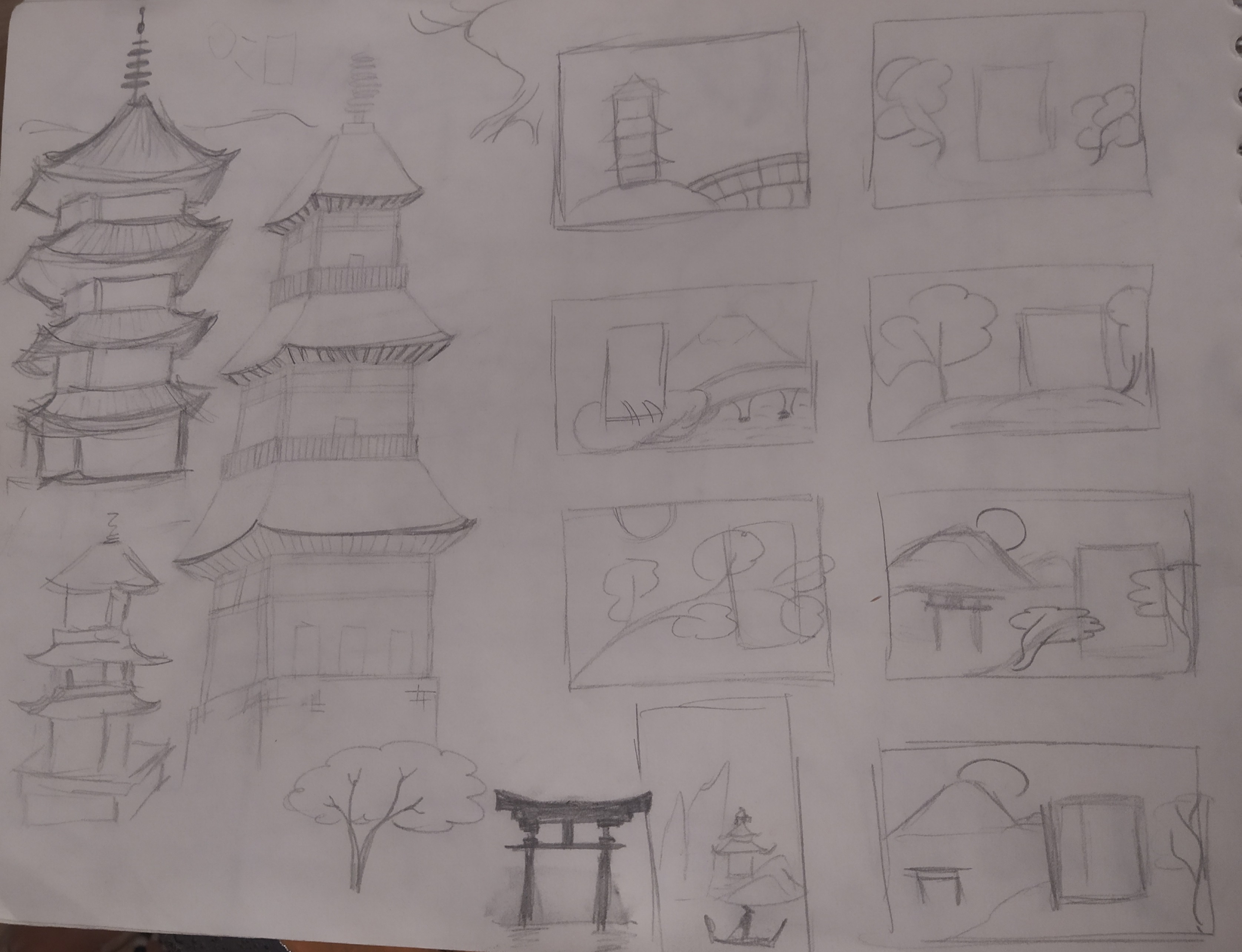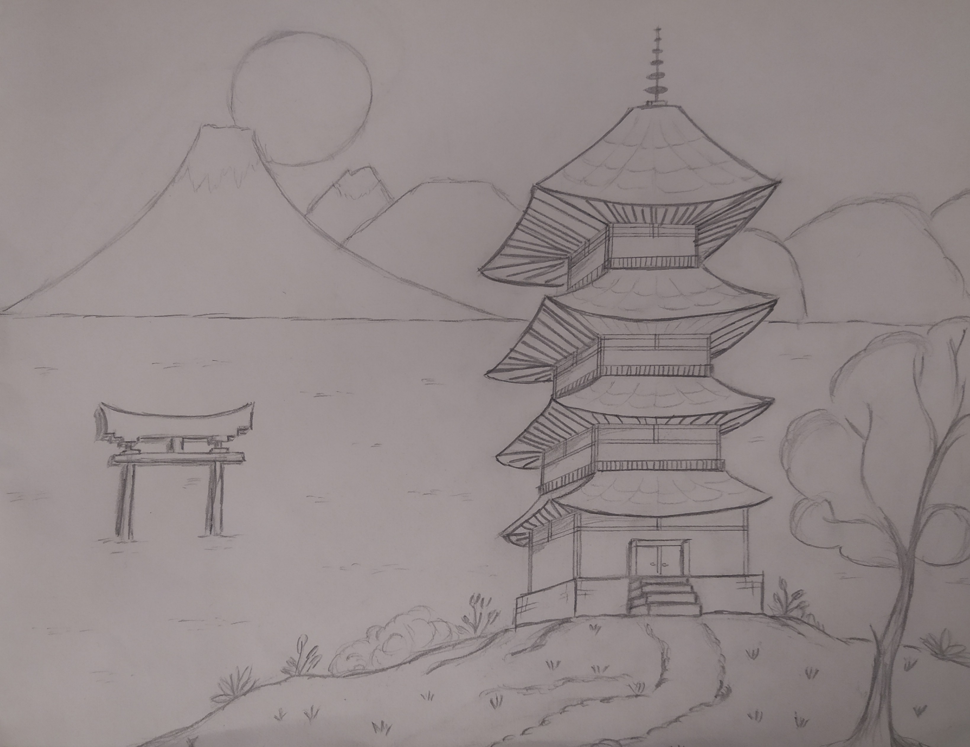 Das Thema meiner Tochter "Japaner Tempel", riesige Themen und die Imperative des Trainings, also ging ich vor mir. Eine kleine Recherche, um kein Thema abzuhalten, und hier ist mein Entwurf.
