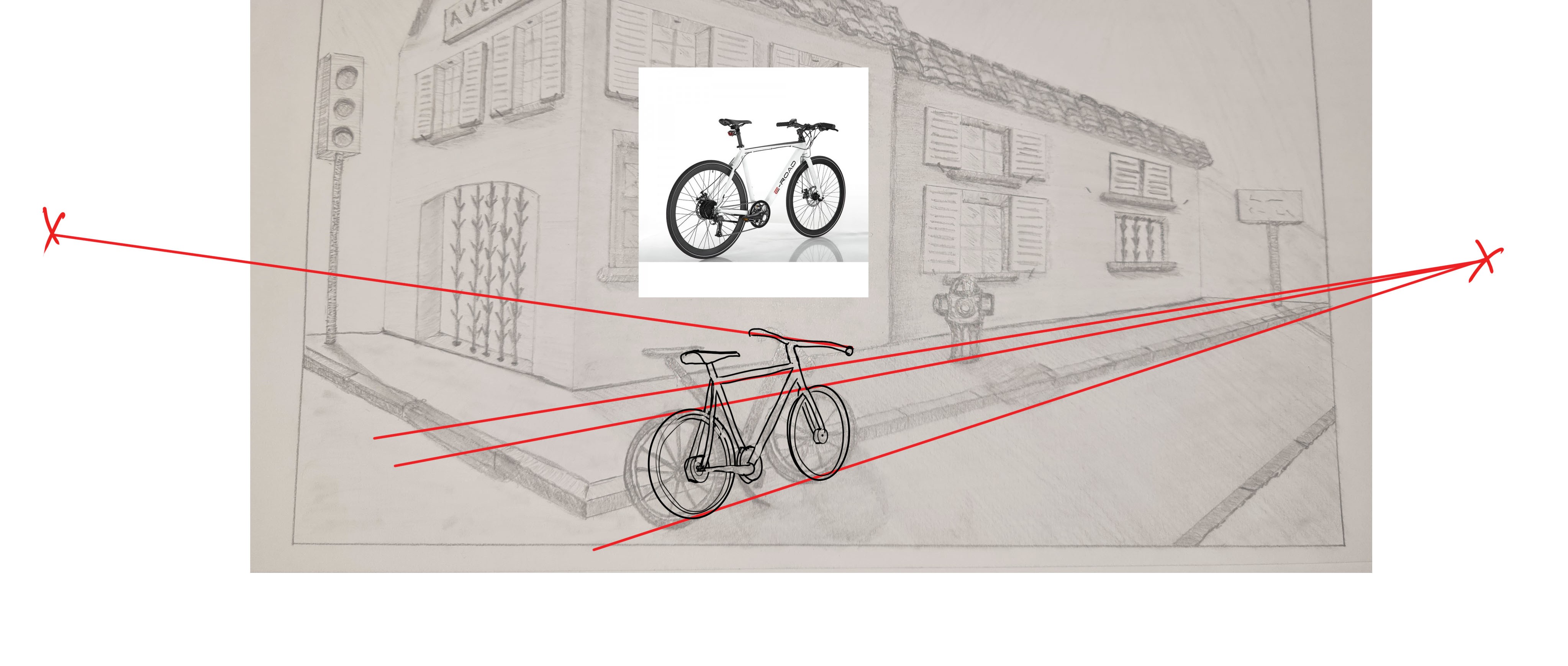 Ein Fahrrad ist in Ordnung, aber es hat immer noch Bände, insbesondere viele Zylinder. Versuchen Sie wirklich, jedem Element Ihres Fahrrads und den Orten in der Perspektive Ihres Bildes Volumen zu geben.
