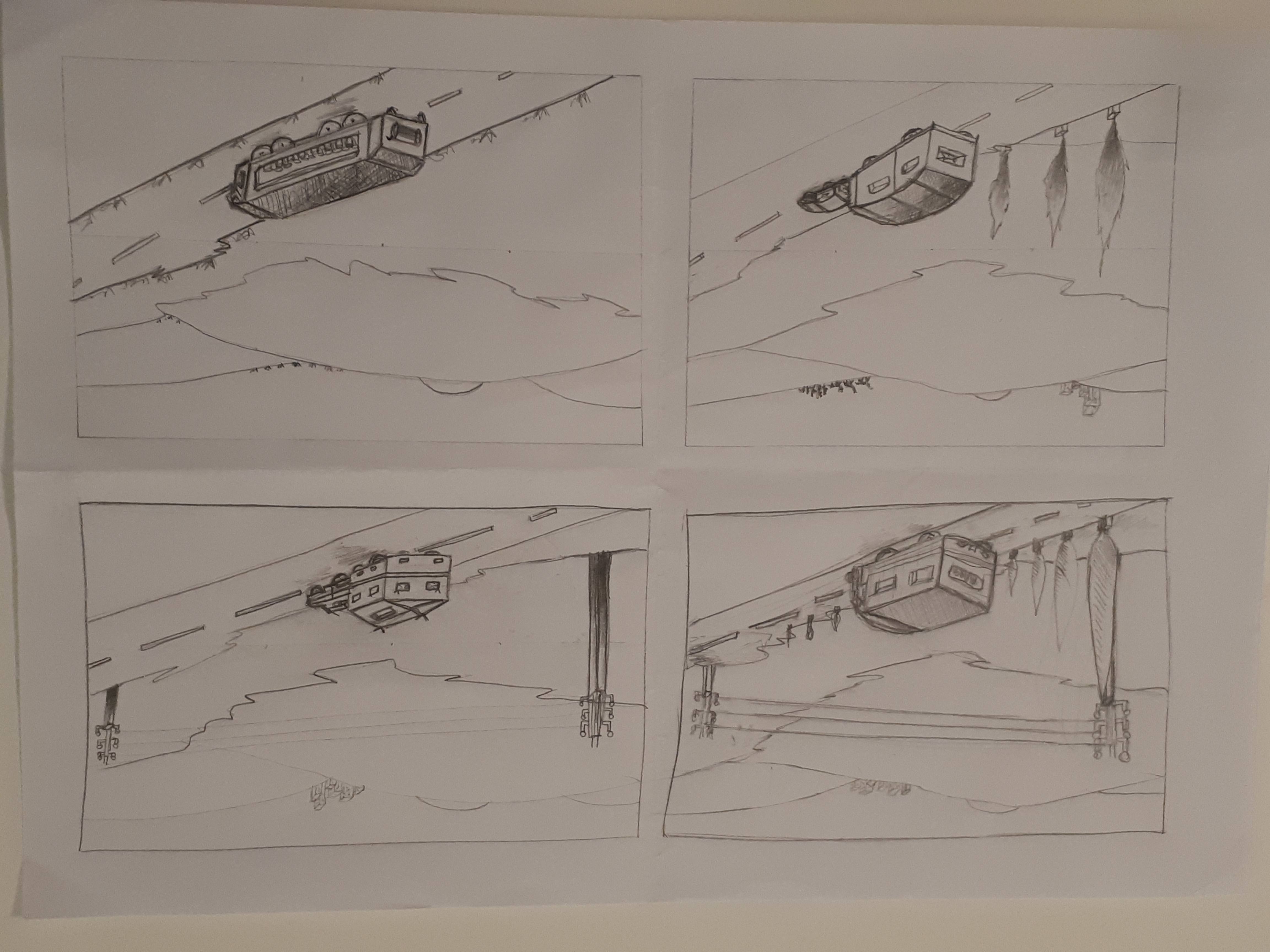 Bonjour Nanoue, ta composition est intéressante, tu aurais dû la garder pour la mise au propre ! Par contre, tu as toujours un peu de difficultés sur la perspective de tes dessins. Je te conseille vraiment de placer tes points de fuite et de construire ton image en perspective avec des volumes simples et tracés en douceur avant d'aller dans le détail.