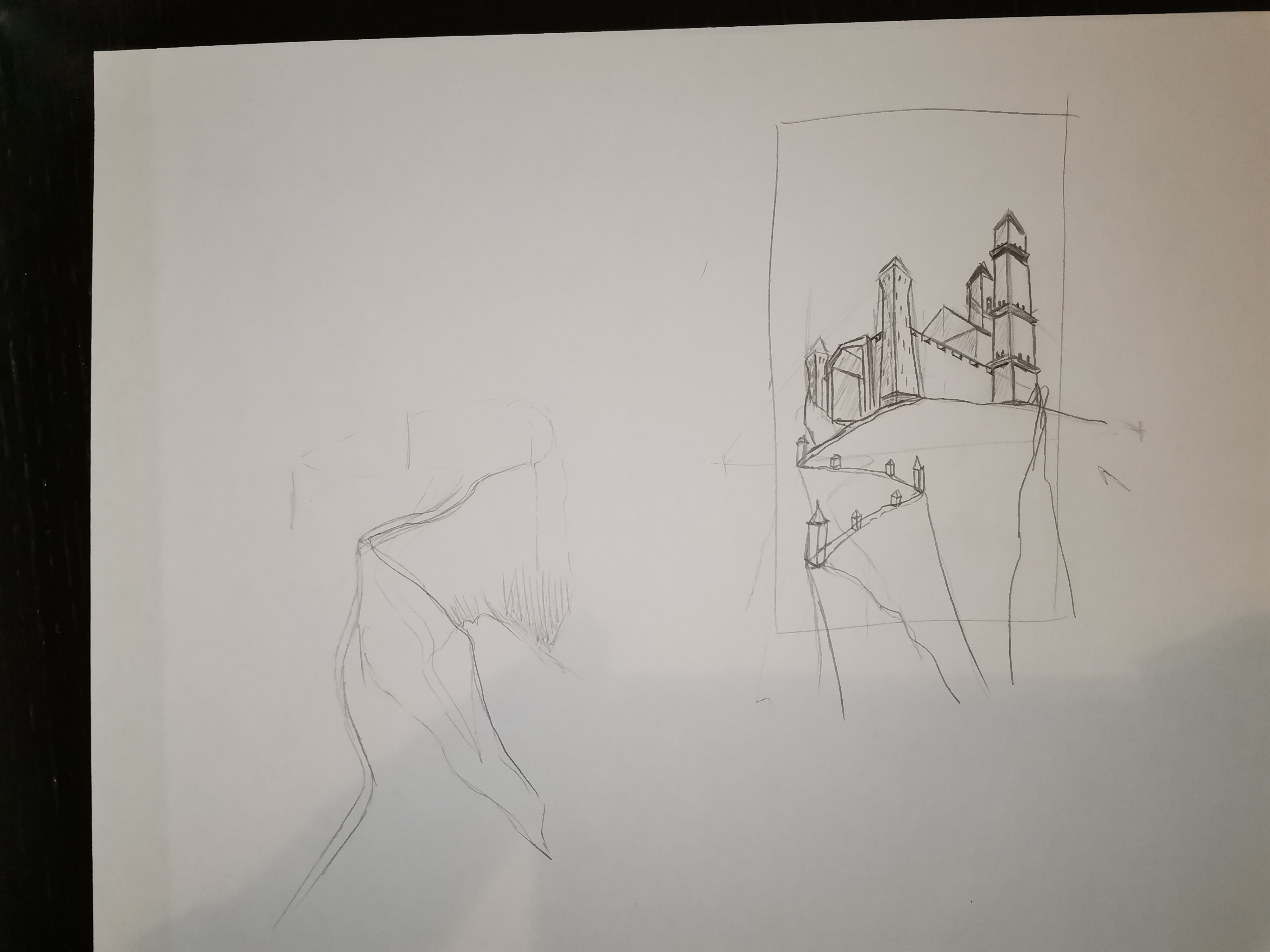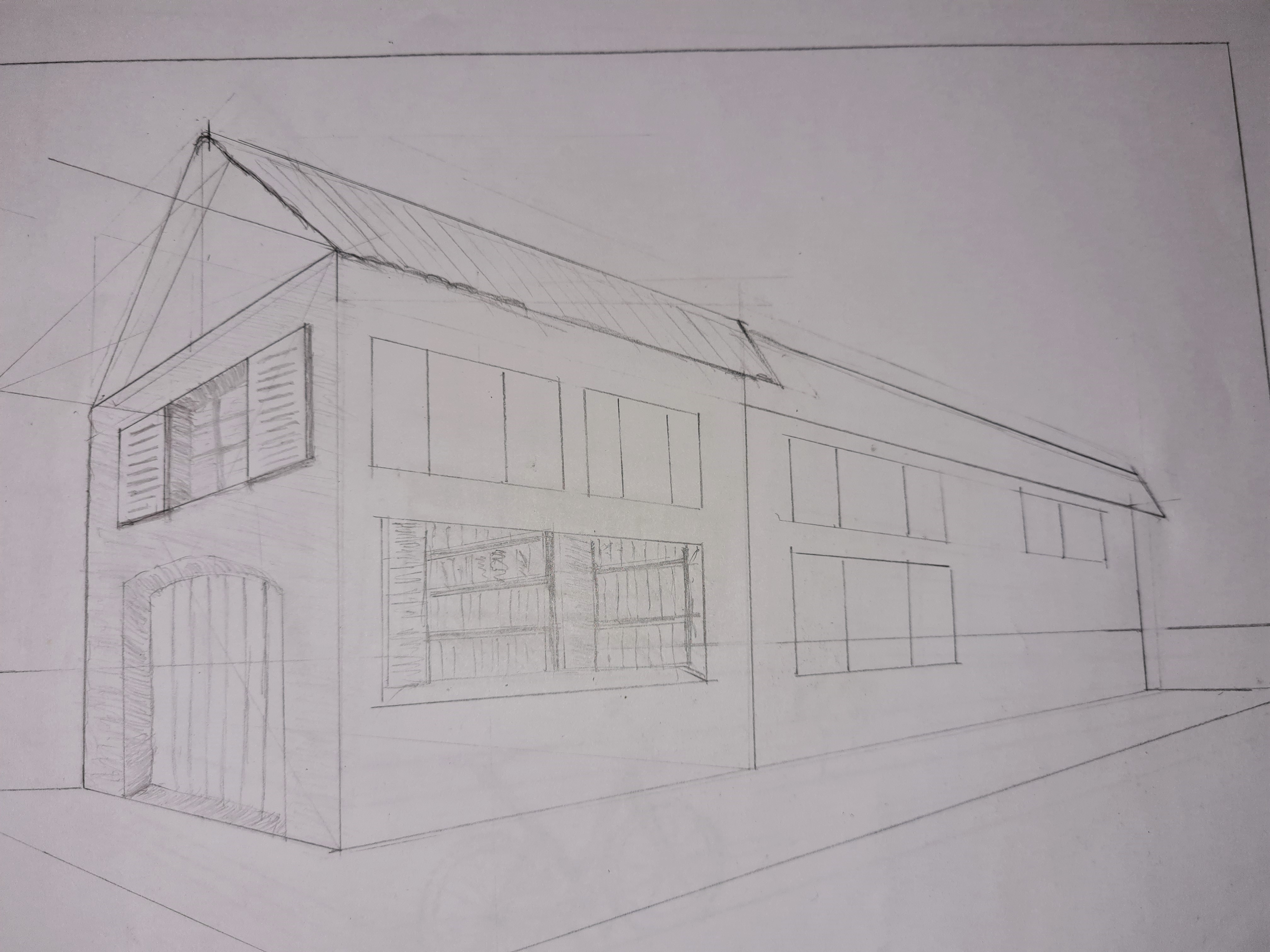 Hallo Chavir, Bravo für Ihre Forschung und Ihre Kompositionen, die wirklich interessant sind! Alle Ihre Gebäude müssen in dieser Perspektive für Konsistenz in Ihrer Zeichnung sein. Also sogar die kleinen Häuser/Kurven, die Sie an der Wand gezogen haben.