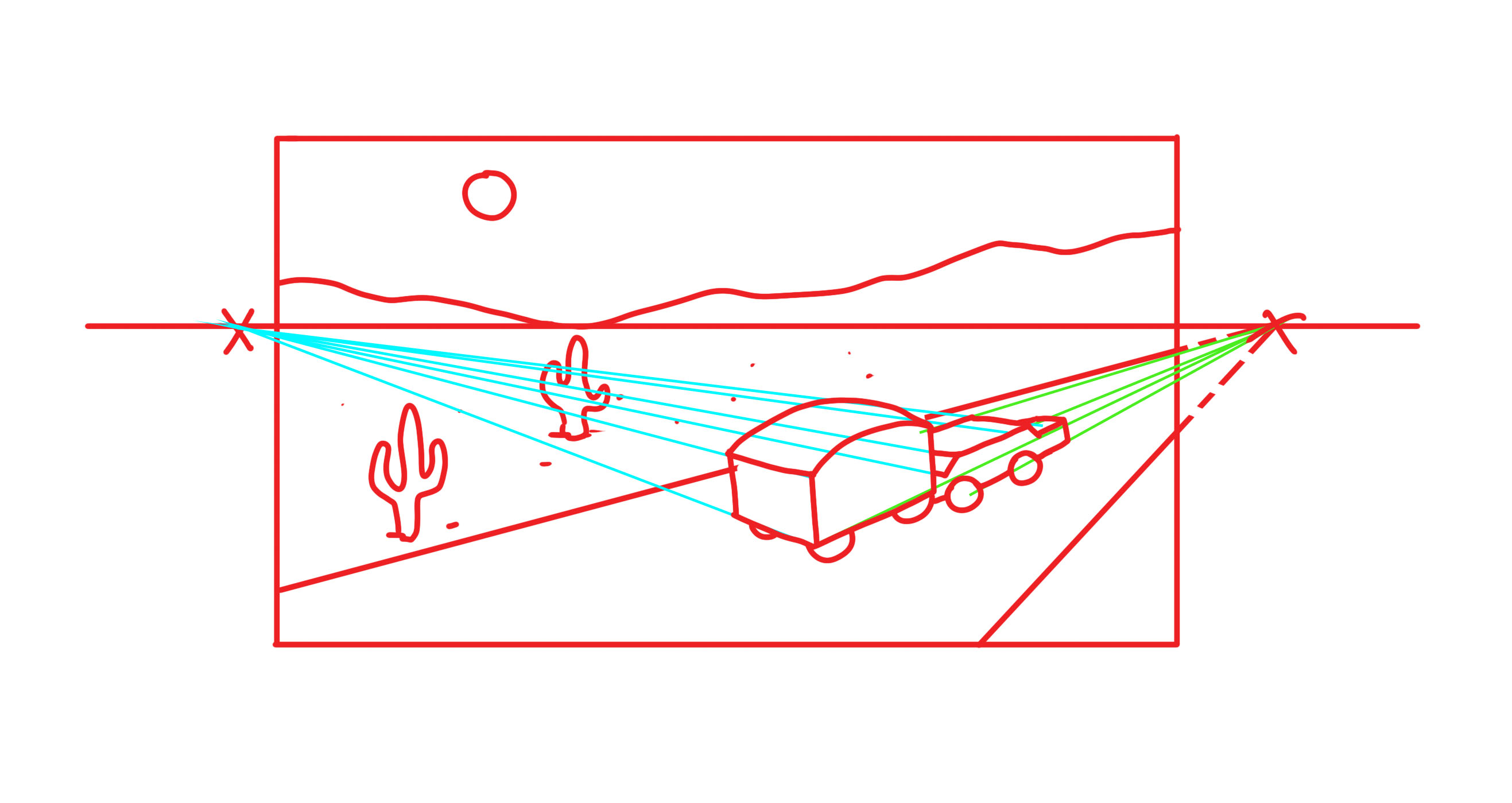 Est-ce que la ligne d'horizon, les lignes de fuites et la règle des tiers sont correctes ?