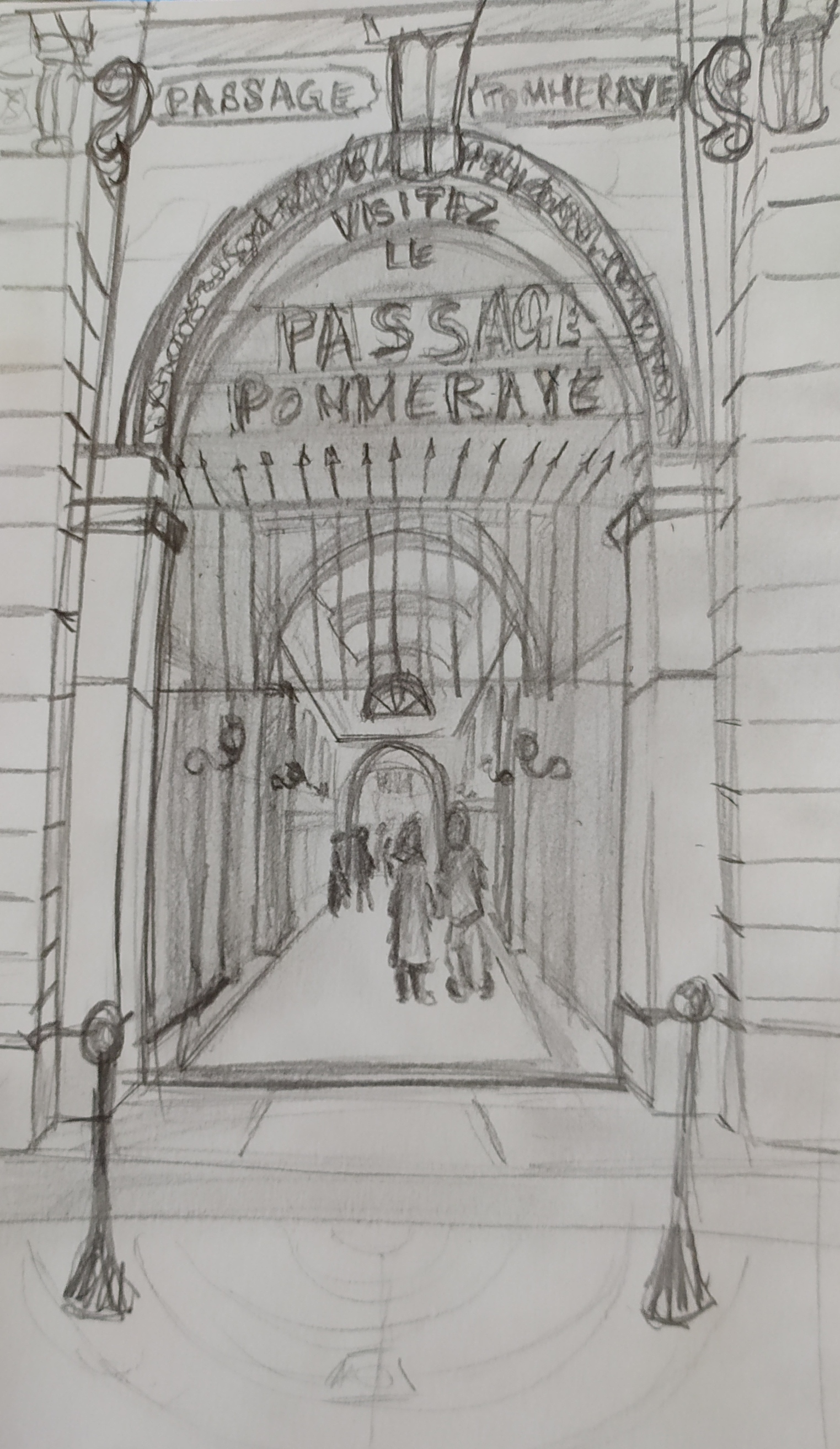 Ich sende Ihnen meinen Sketch -Test auf der Pommeraye -Passage.