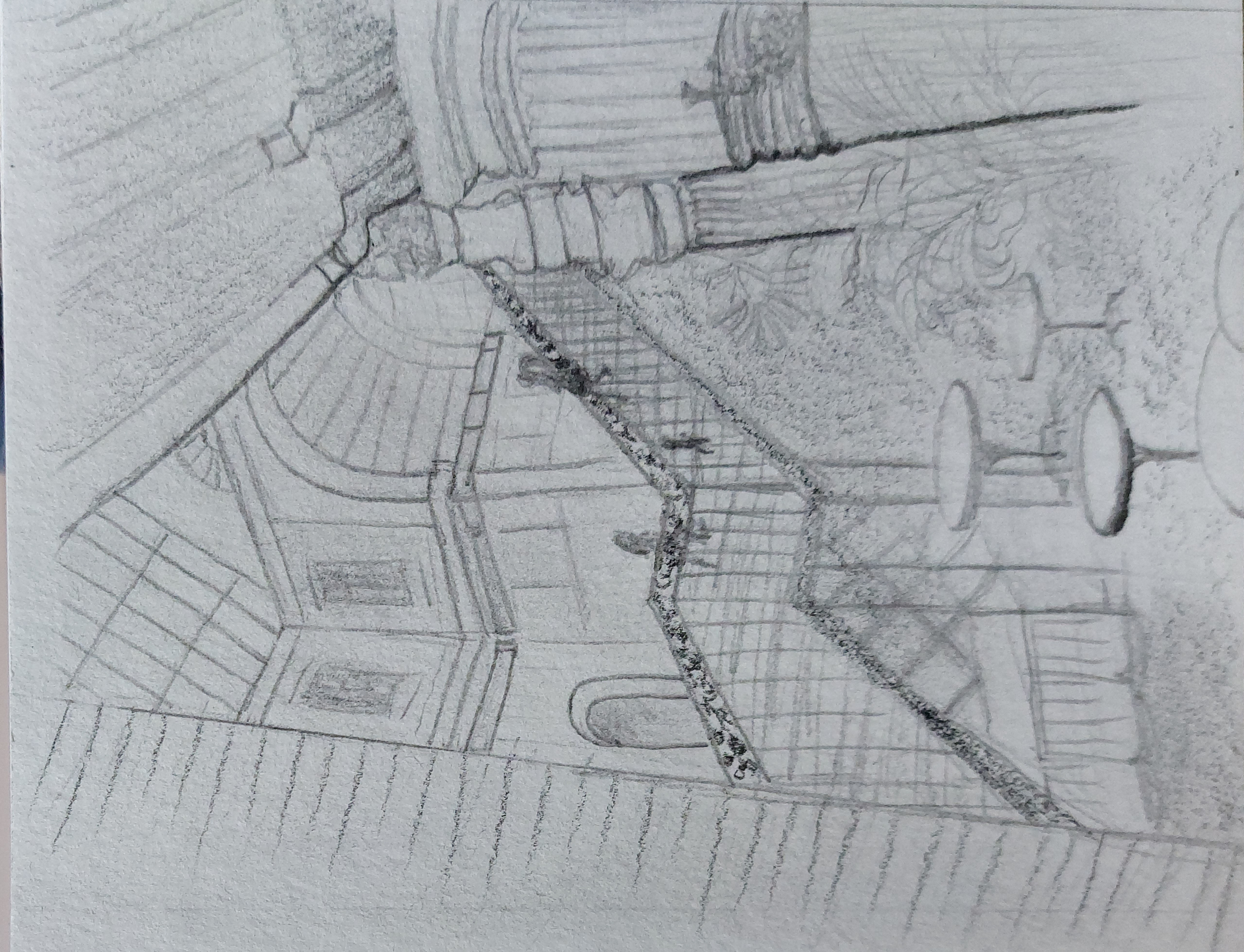 Bonjour Camille, voici ma première esquisse. Je pense que j'aurais pu simplifier encore plus et passer un peu moins de temps pour un premier essai (15 minutes je pense) L'architecture c'est un peu plus compliqué d'être spontané mais cela va venir avec la pratique je pense.