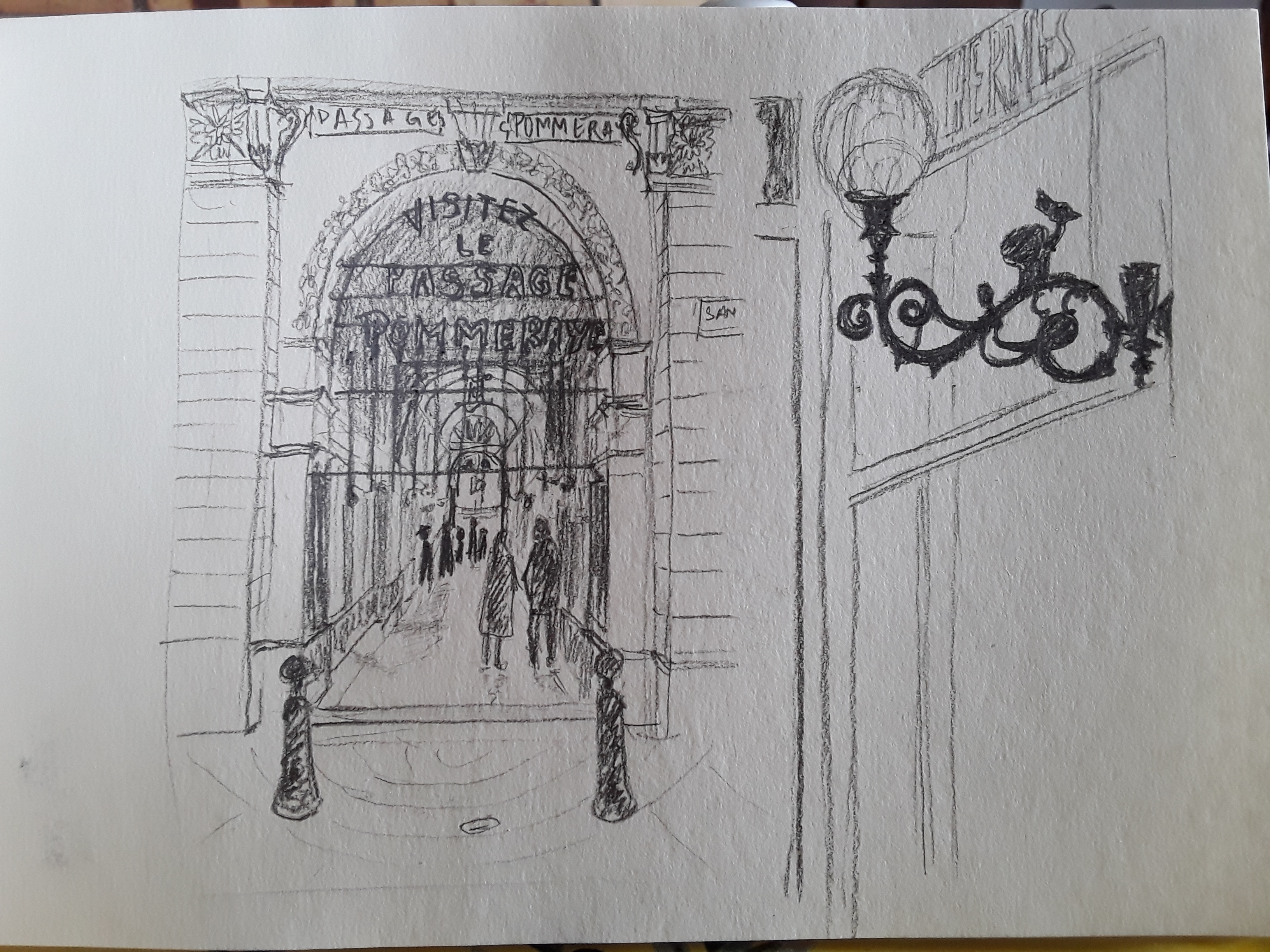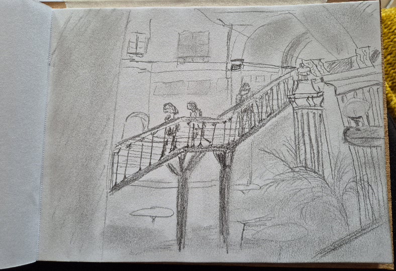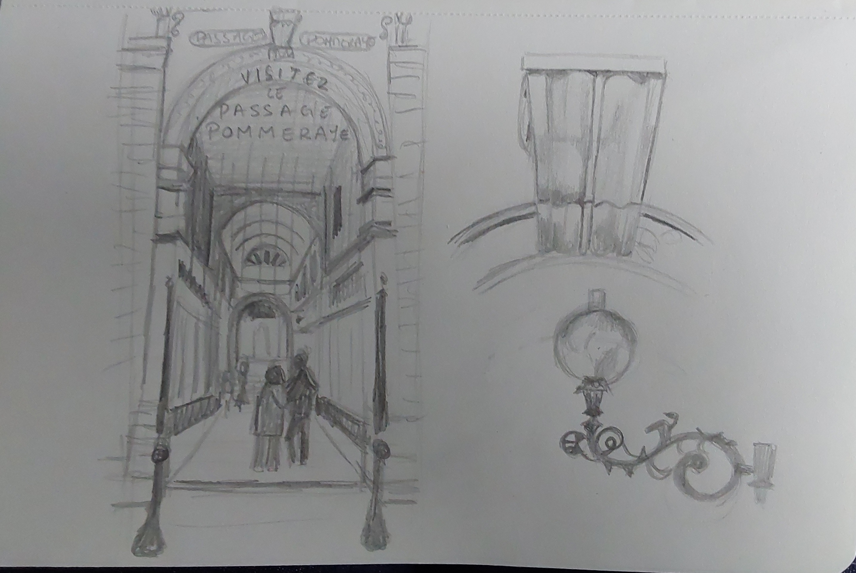 Ca n'est pas grave si tu n'as pas d'estompe, les croquis peuvent très bien fonctionner sans :) D'ailleurs très croquis (en particulier la lampe) sont super réussites ! 👍 Pour améliorer celui avec le passage tu aurais pu jouer d'avantage sur l'intesite des traits par exemple en fonçant un peu plus le premier plan, cela permettrait d'accentuer encore plus l'effet de profondeur :)