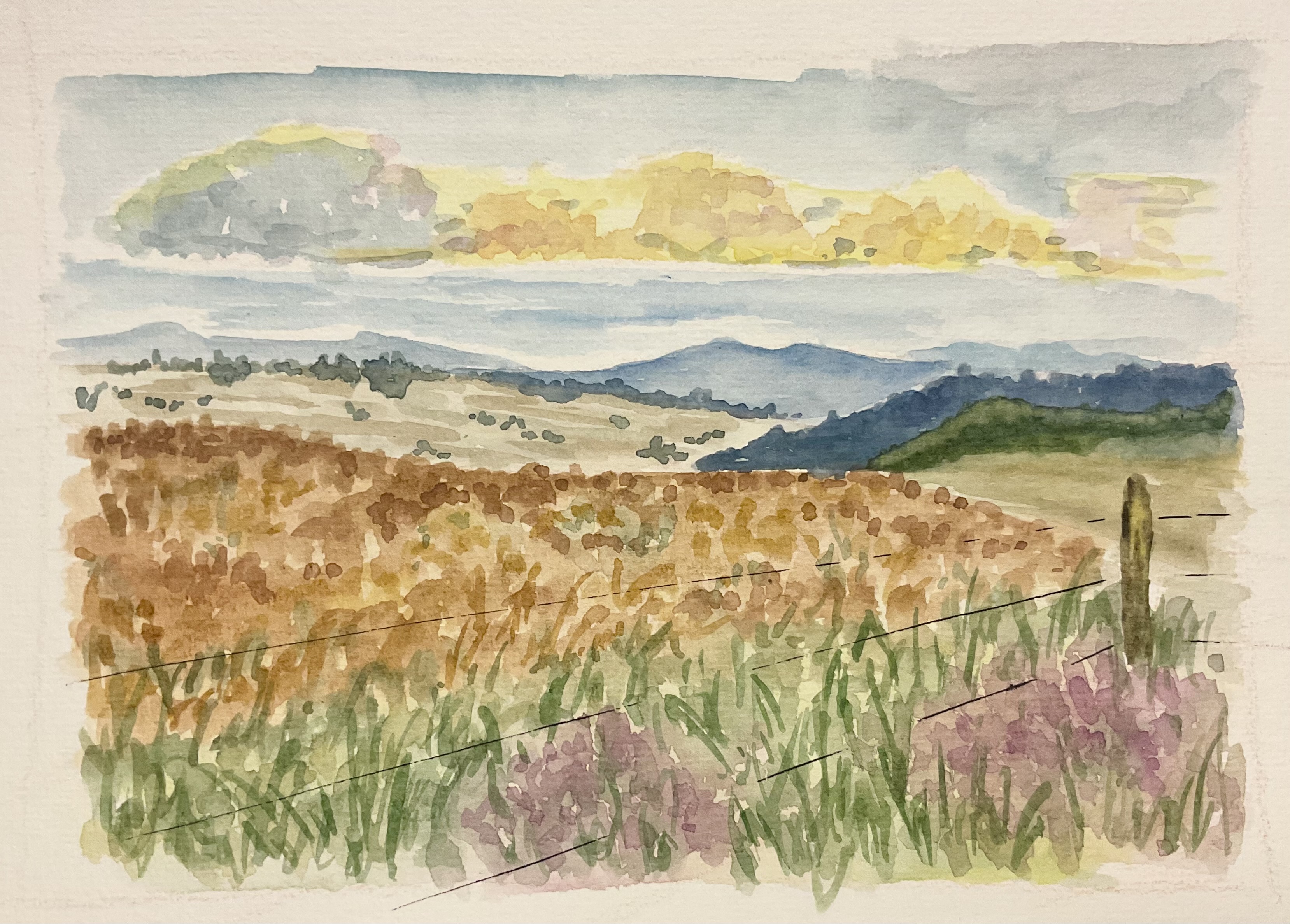 Sur tre deux aquarelle tu aurais peut être pu intensifier légèrement le premier plan pour qu'on distingue bien les éléments et que ça apporte de la profondeur, les arbres aux premiers plan de la première se perdent un peu avec les forêts de l'arrière plan idem avec les plantes de la seconde. Pour celle ci je pense que tu aurais aussi pu travailler les nuages avec plus d'eau pour qu'il est un rendu plus fondu car là ils ont une texture similaire au champs. Ca reste de belles aquarelles, avec de belles couleurs intenses :)