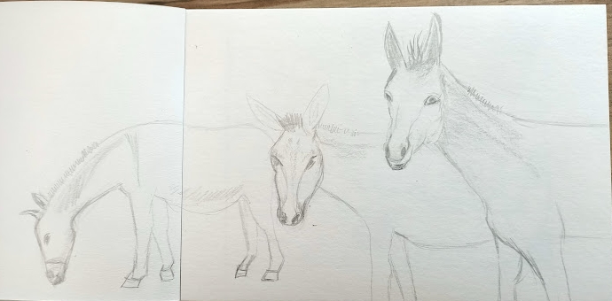 Voici mes ânes en esquisse environ 20min en regardant une série :P