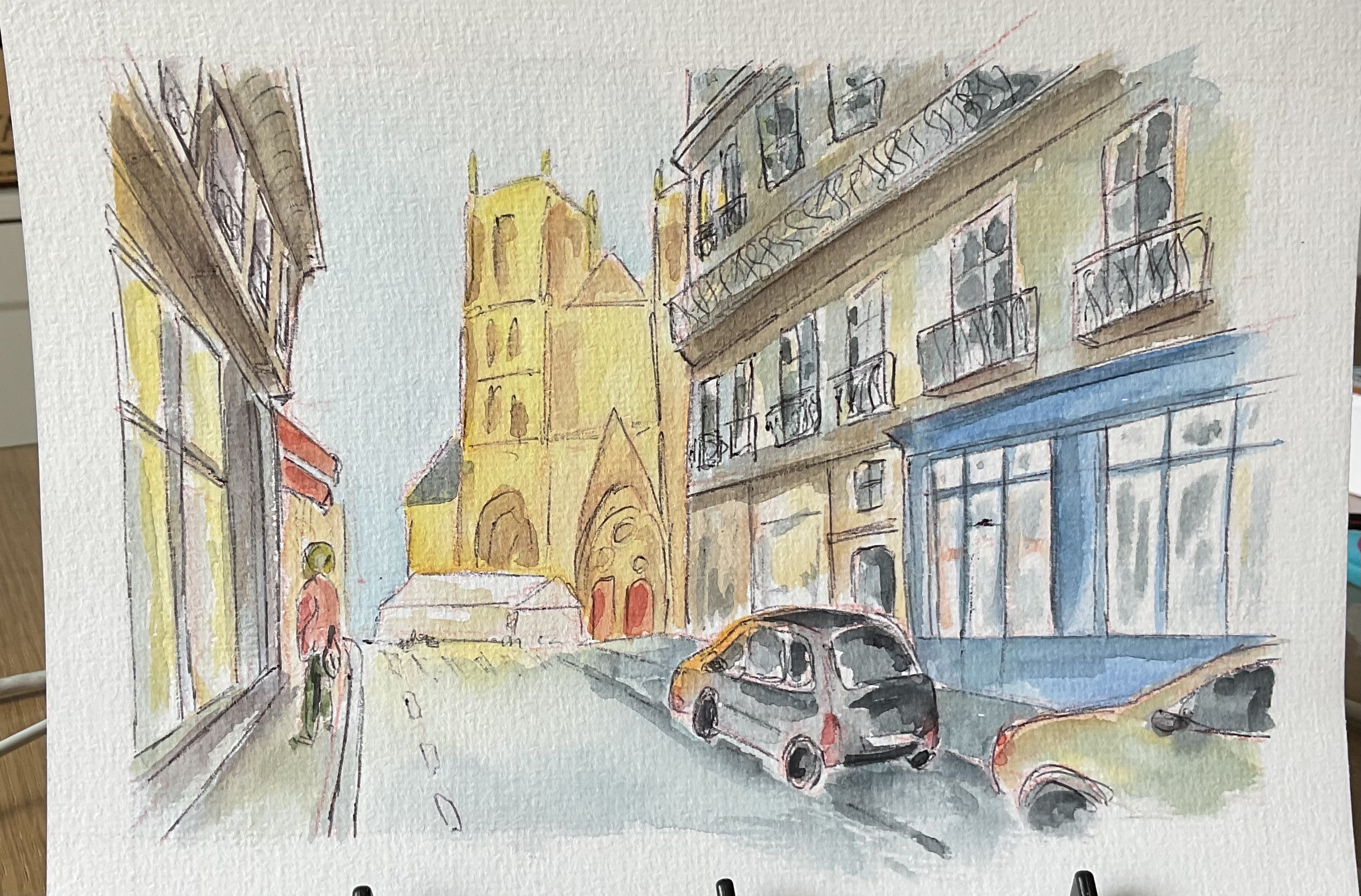 Plus facile pour moi que le paysage niveau aquarelle car il y a juste des touches de couleurs et on voit moins les gros pâtés comme sur mes paysages... La voiture un peu petite sûrement...merci de ton retour. À quand le cours d'aquarelle ?
