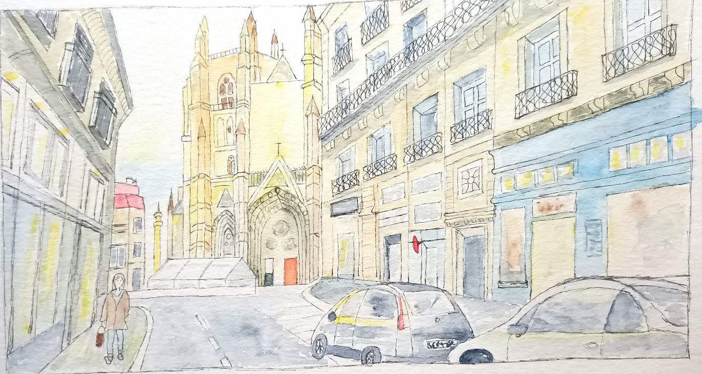 voici la rue de Nantes. J'y ai passé beaucoup de temps et j'ai conscience d'avoir trop détaillé, ça ne ressemble donc plus à un croquis. Mais j'y ai pris beaucoup de plaisir.