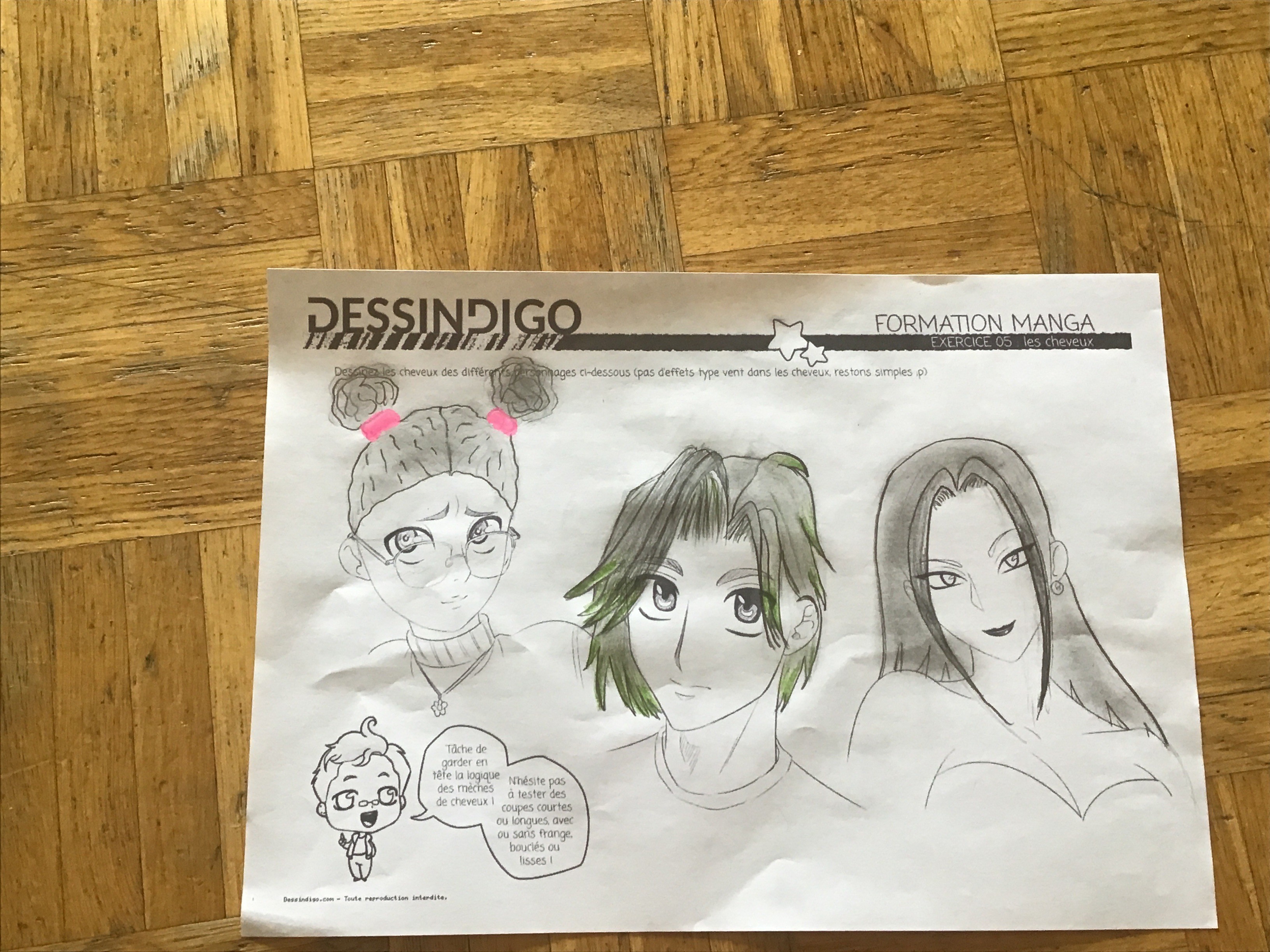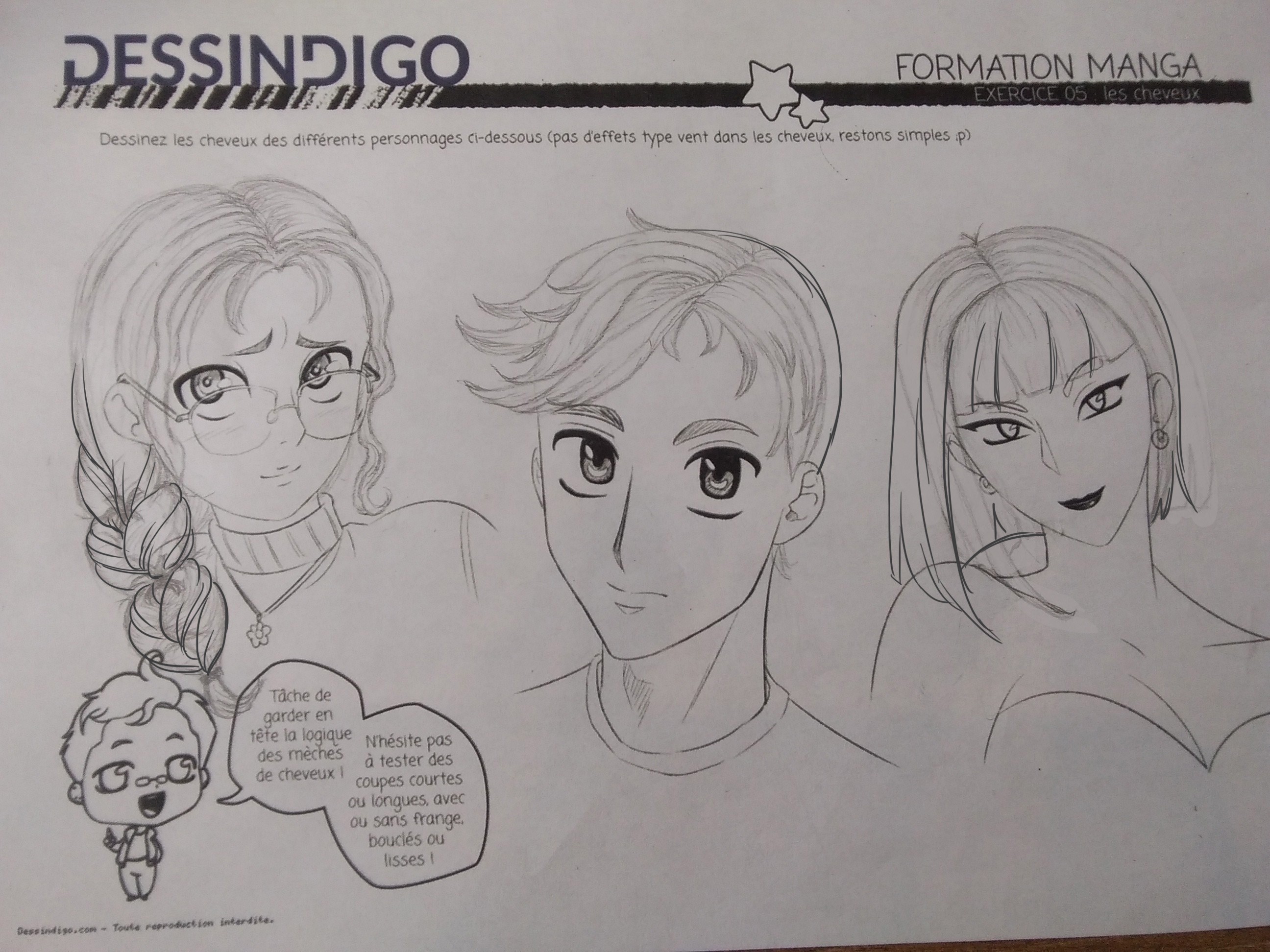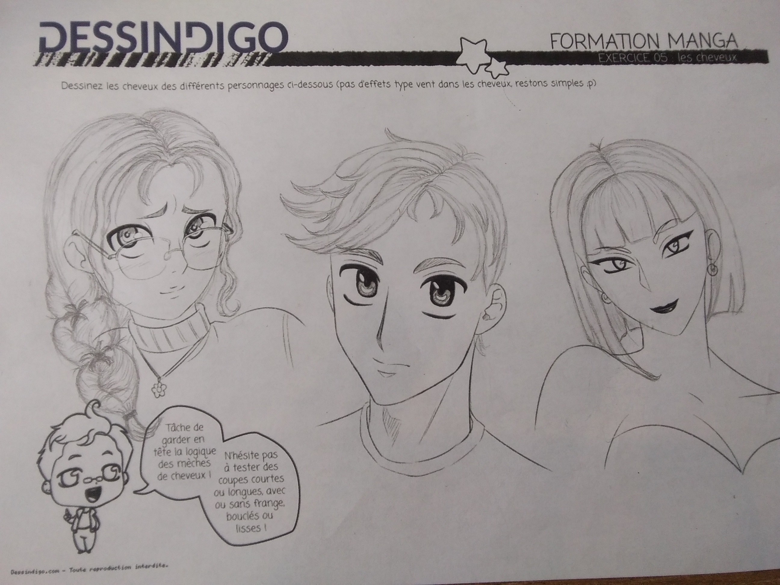 Für den Jungen gibt es eine zu systematische Seite: Zu viele Dochte haben trotzdem behandelt. Und für den letzten denke ich, dass die Form des Schädels nicht ganz gut ist, das Haar glatt aussieht, aber plötzlich hat es auf der linken Seite zu viel Volumen, wenn es nicht besonders pinseln scheint. Zögern Sie nicht, flexiblere Dochte zu machen. Ich bin Ihnen eine Korrektur an, um zu veranschaulichen, was ich sage ^^