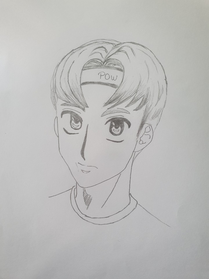 Der Junge ist sehr gut, ich habe nur eine Trap -Frage für Sie: Er trägt ein Stirnband, oder? Wie ist es beigefügt? Und pass auf die Kurve dieses Banners auf, es sollte die gleiche Kurve wie die der Augen sein (in der anderen Richtung, die gebogenen ^^).
