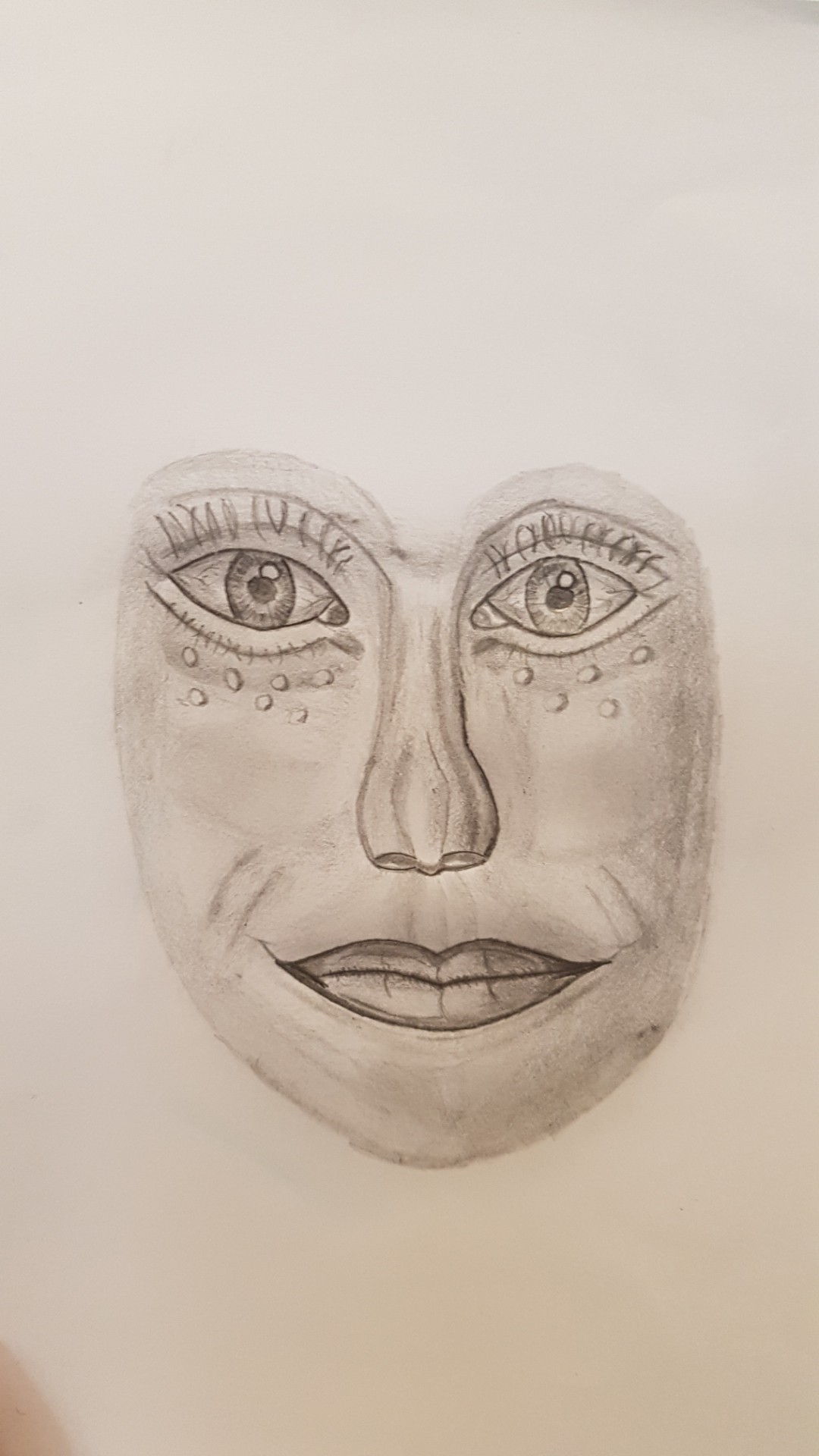 J'ai aussi fini par me jeté a l'eau faire un premier visage sorti tout droit de ma tête que je vous joint bien-sur après s’être entraîné a dessiné plusieurs œil bouche nez pas trop d'oreille pour l'instant :/ petit blocage .