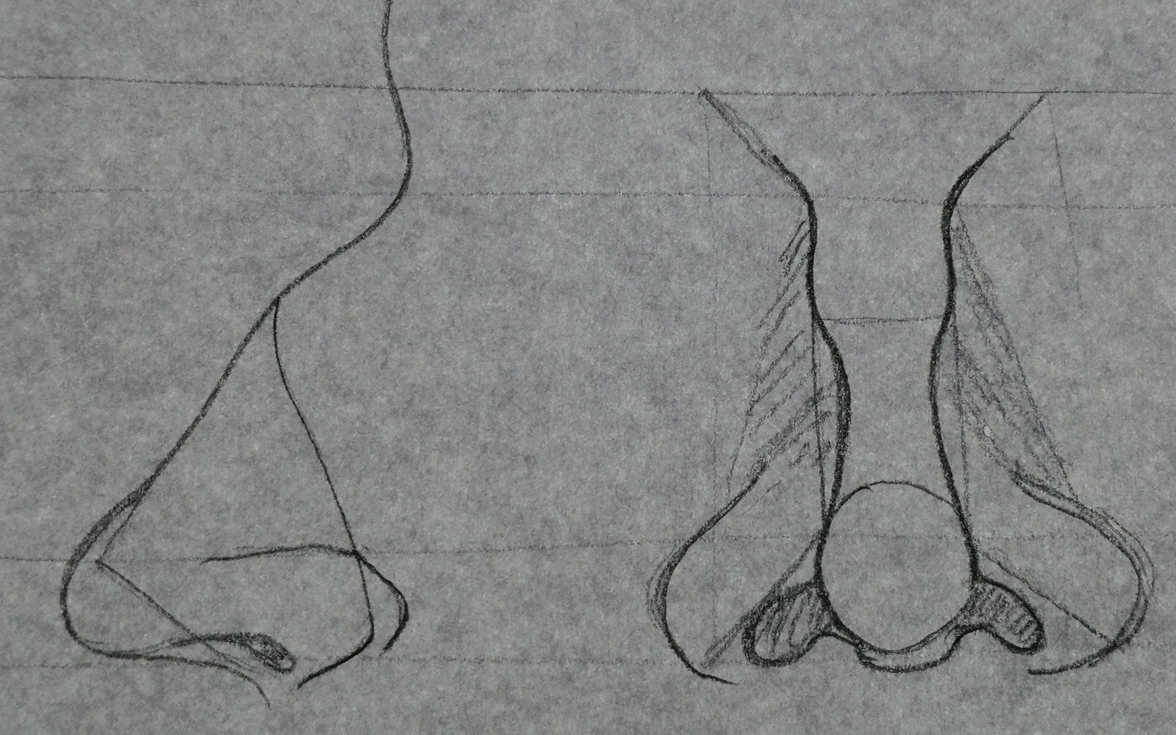 Good thinking! Try 3/4 now and with high-angle/low-angle shots to properly capture the volumes. Redoing your construction from different viewpoints will help you master the principles of constructing the nose 👍