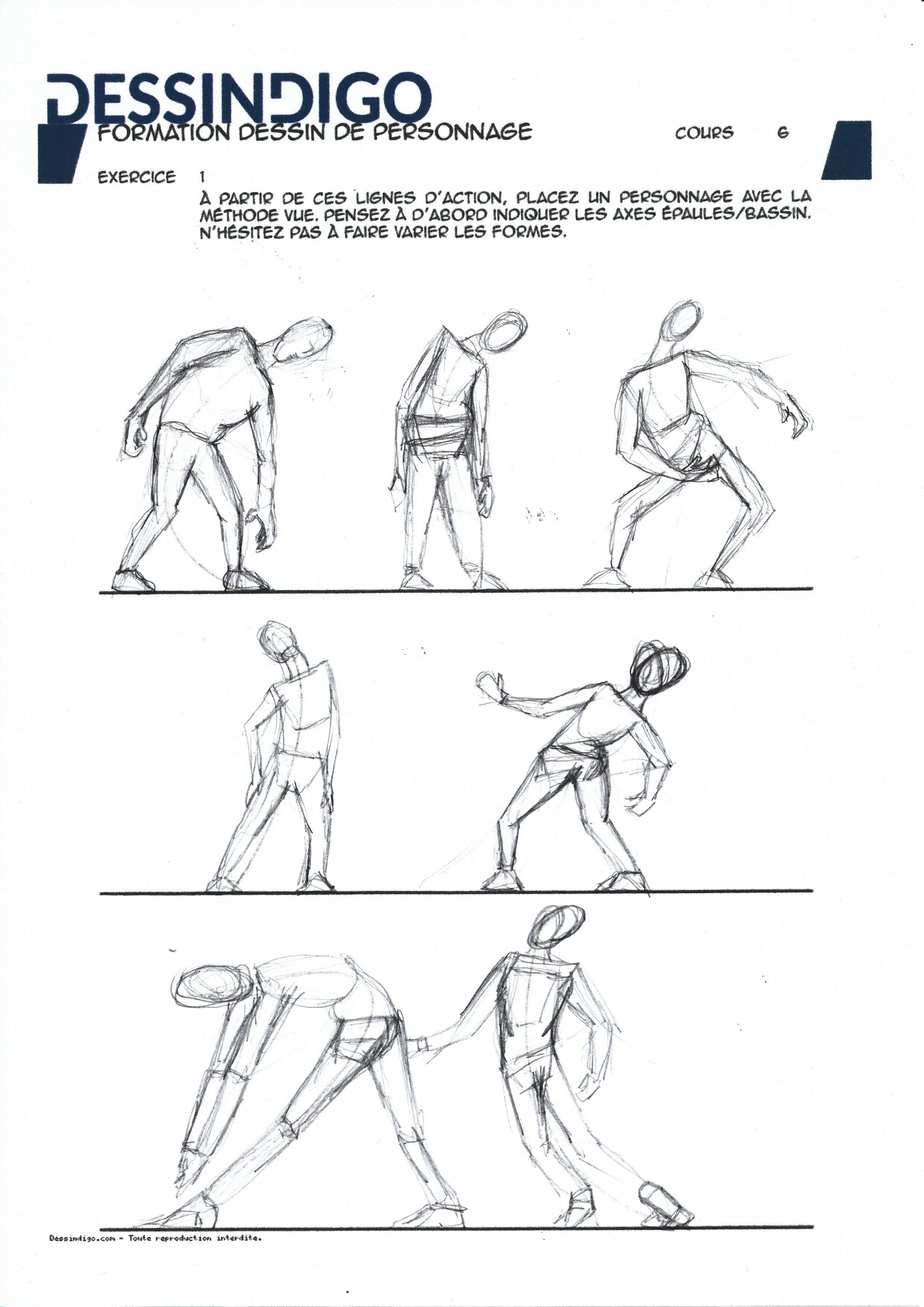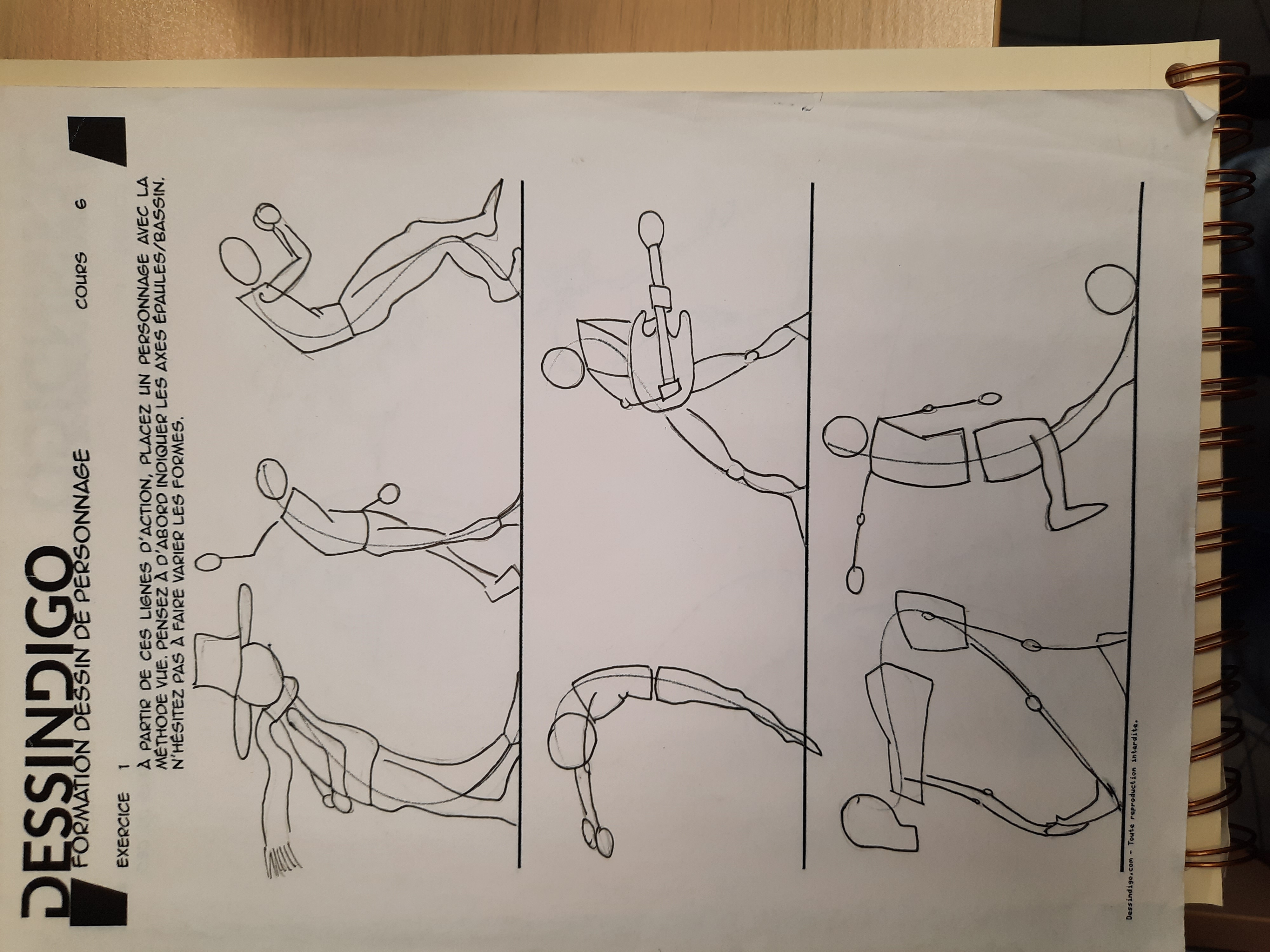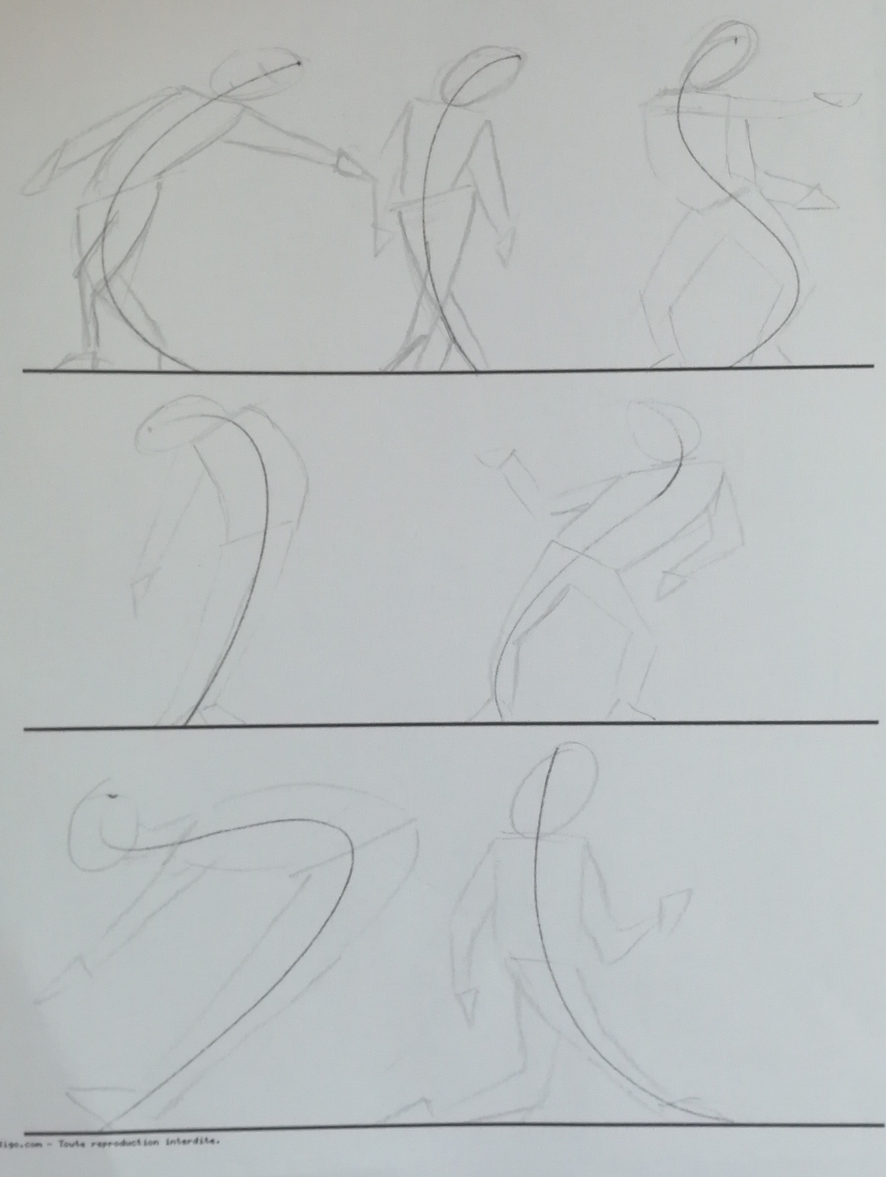 je vous retourne mon exercice sur les lignes d'action, je me suis d'abord documenté pour essayer d'approfondir le sujet et bien comprendre les mécaniques de l'exercice. celui-ci n'est pas simple et j'ai pu expérimenté différente façon de faire. je m'explique je me suis rendu compte que sil l'on dessine du carton ou de la bd ou encore du comics ou manga les lignes d'action sont plus ou moins exagérées. après plusieurs essais et support de référence je vous livre mon travail. pouvez-vous me communiquer des réf afin de pouvoir les travailler. un grand merci à votre travail sur cette formation et à votre pédagogie avec une simplicité dans l'explication