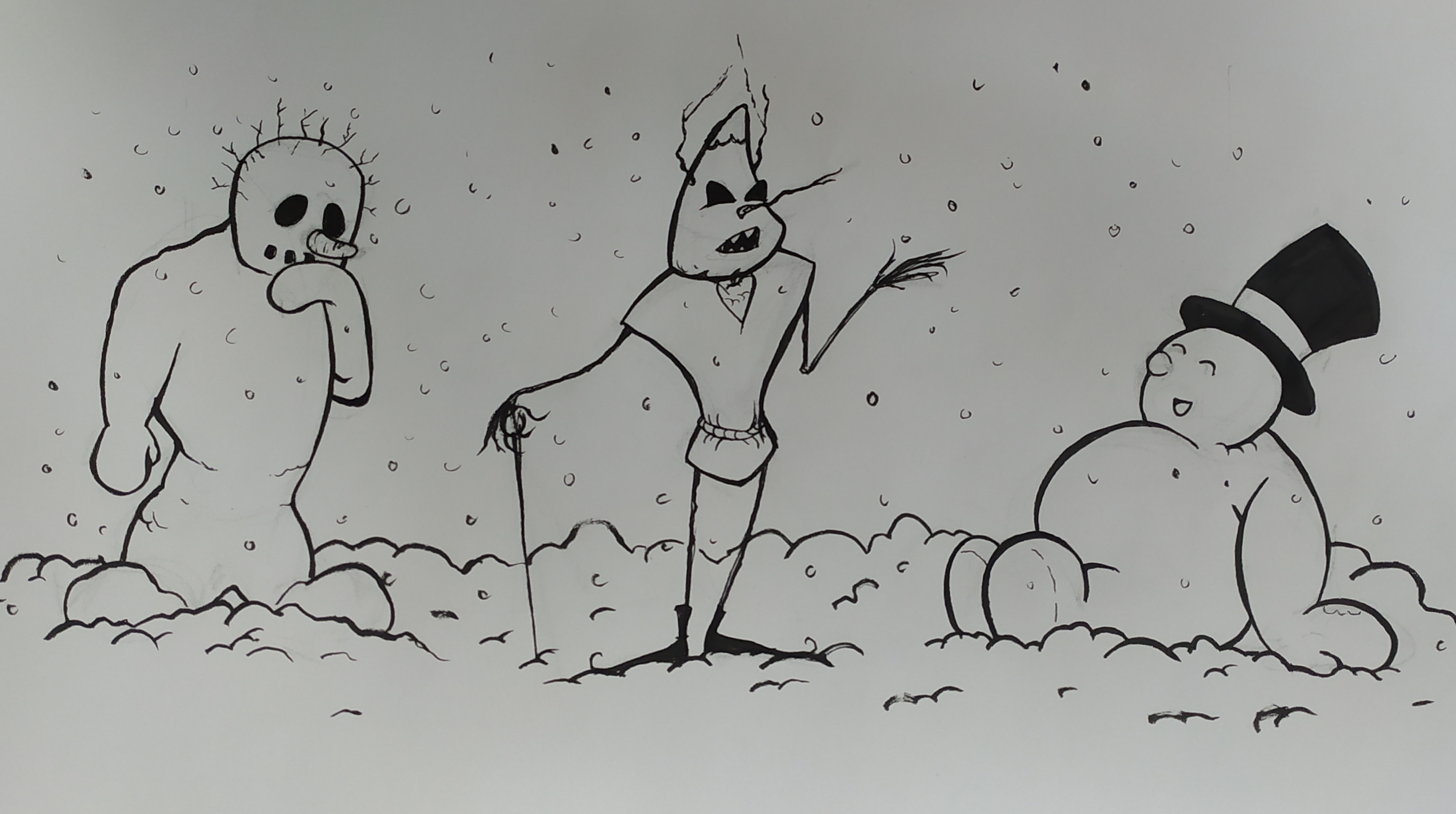Super pour ces personnages enneigés, c'est top. Les shapes sont supers, chacun a sa personalité bien marquée qui fonctionne. Le triangulaire a une autorité bien marquée c'est top ! Bravo !
