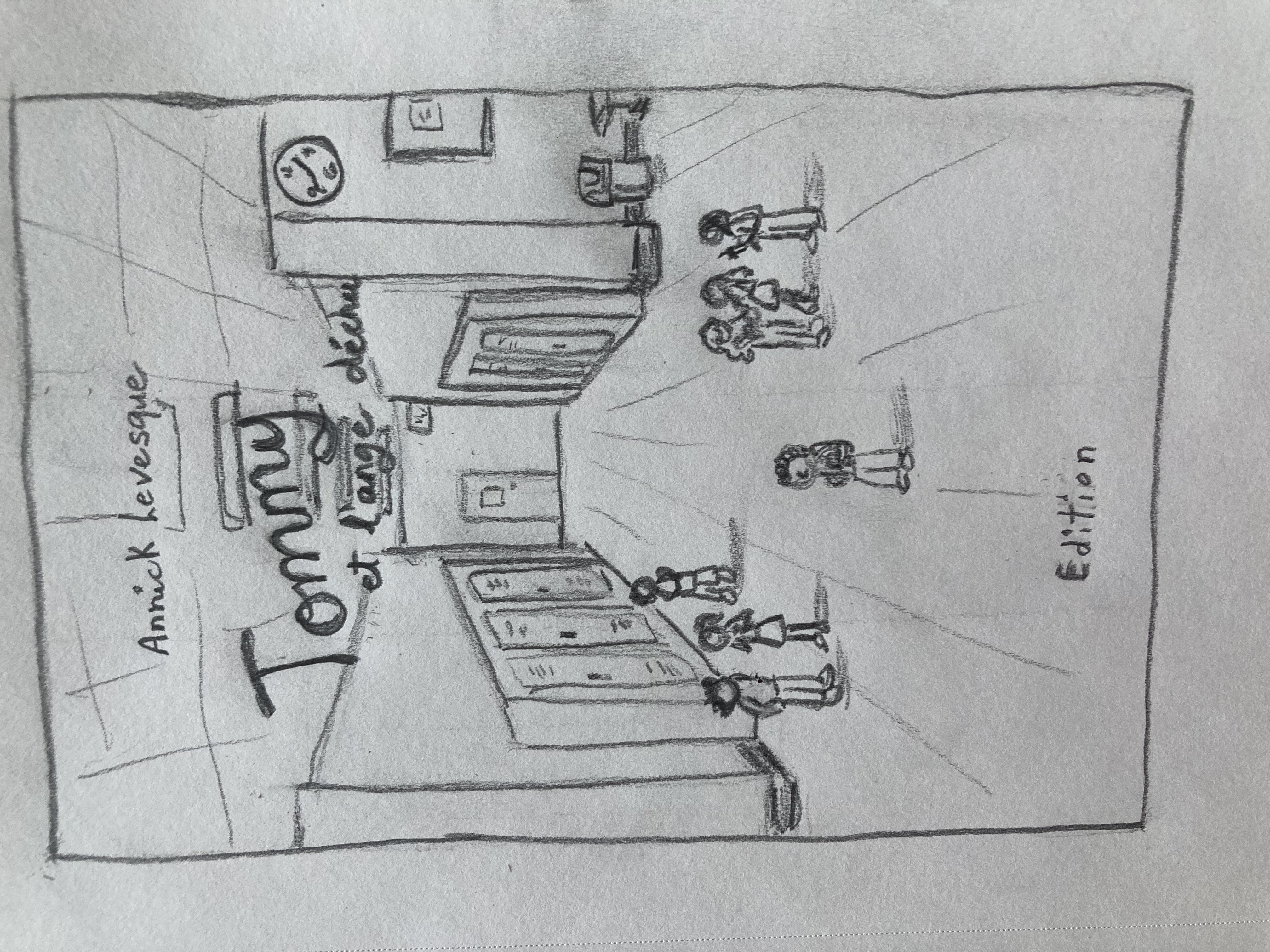 Je viens de faire le brouillon pour voir à quoi pourrait ressembler la couverture de mon roman. Dans l'image finale les personnages seront beaucoup plus gros, bien sûr. Je visualisais encore comment je pouvais placer mon décor, derrière. Je vais surtout me concentrer sur l'image. Je l'offrirai à la maison d'édition qui acceptera de publier mon manuscrit. De son côté, elle choisira certainement une calligraphie différente de celle que je pourrais mettre moi-même.
