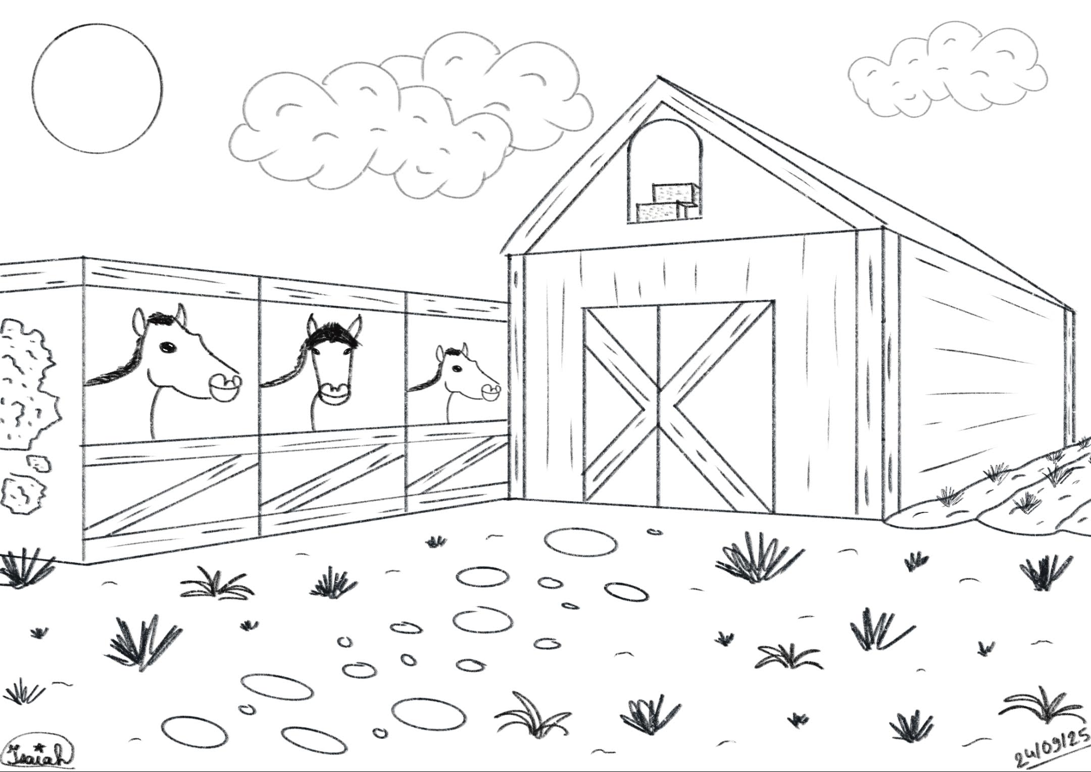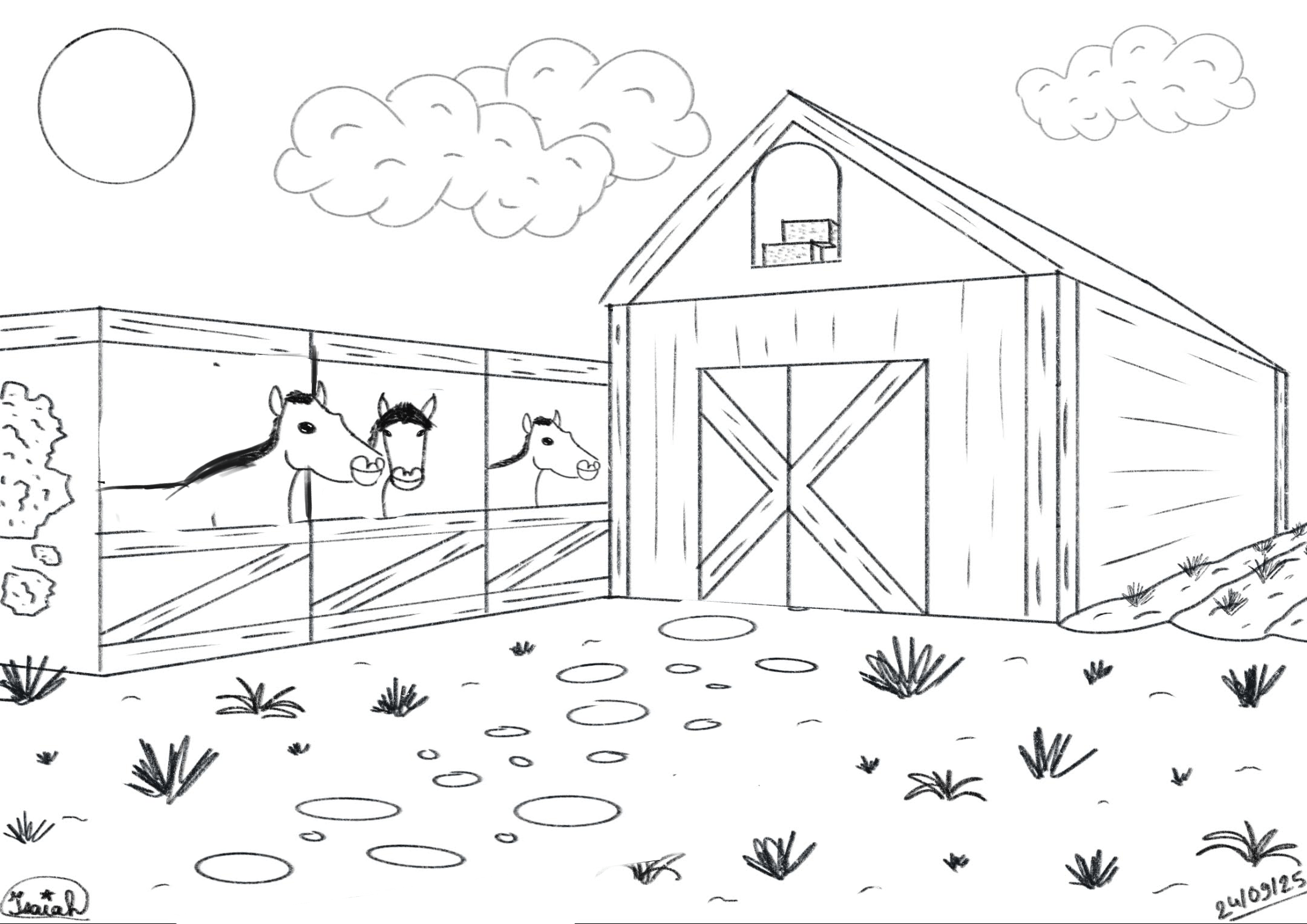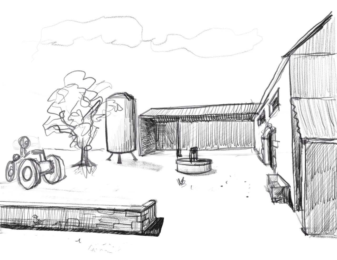 Hello, here is my drawing of the farm in perspective 😊