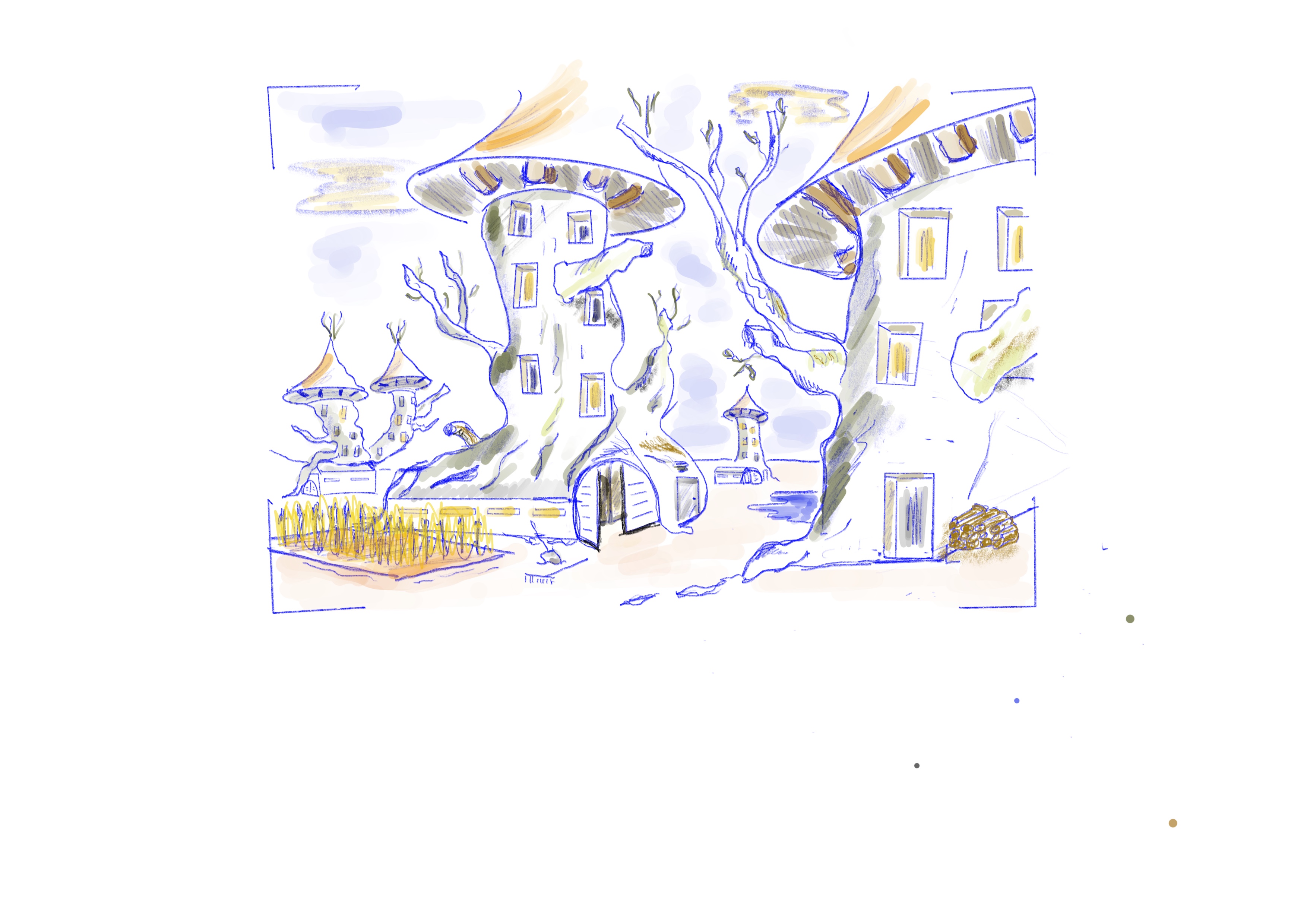 Hi, you've chosen a really interesting decor! You also handled the ellipses of the roofs well.