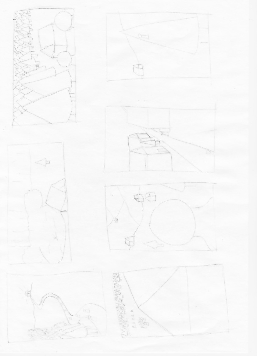 So, I suggest you try again, filling in your images more. Because as you see, once all that empty space is filled, it actually works really well. It's just extremely minimalistic at the moment. Be careful not to place important elements right on the edges, and also be mindful of the perspective (in thumbnail 3, I didn't touch the perspective of the houses, but I justified the change by the fact that we dug into the hill to create a flatter ground).