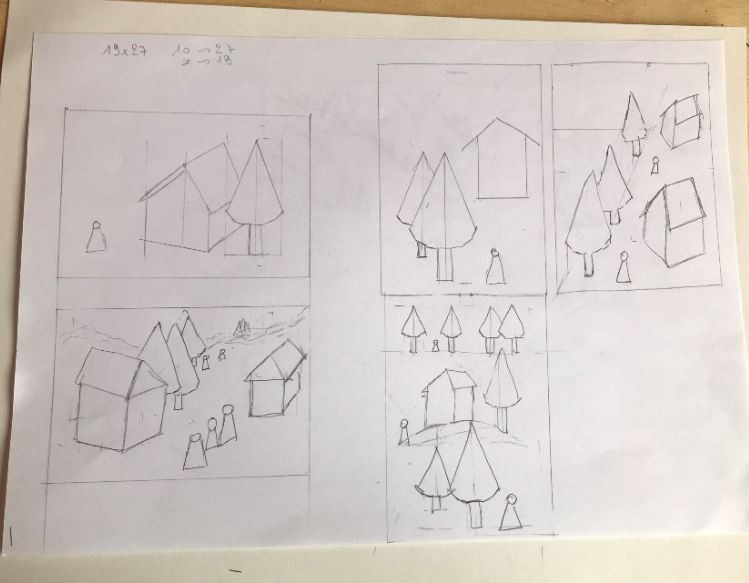 Enfin je voulais rester simple, sans ajout pour juste tester avec des formes simples et voir si les concepts sont compris, essayé de jouer avec la profondeur, la quantité et que le savoir de Grégoire s'ancre petit à petit dans mes réflexe de jeune dessinateur débutant que je suis 🙂 (bien que le résultat peut paraître bizarre car tous les objets et personnages volent dans l'espace 😆