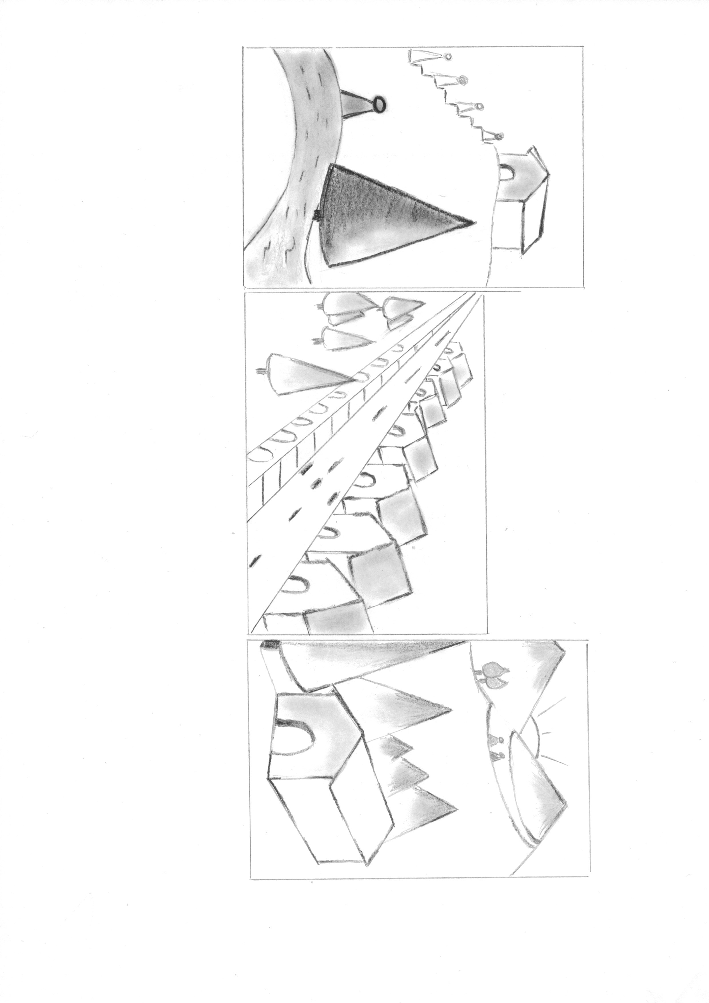 La deuxième moins... Notamment le point de fuite dans le coin du cadre : très mauvaise idée, difficile d'avoir un bon cadrage avec une base pareille ^^" Et puis c'est le vide derrière les maisons, on ne comprend pas bien la profondeur... Bref à revoir. Mais franchement les deux autres sont top :)