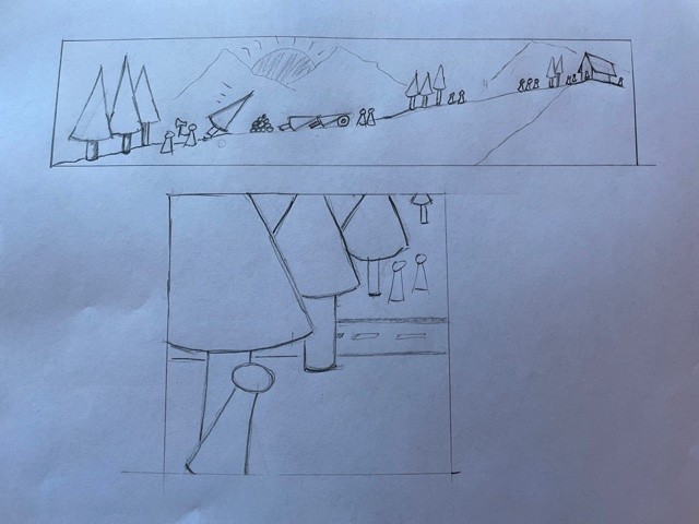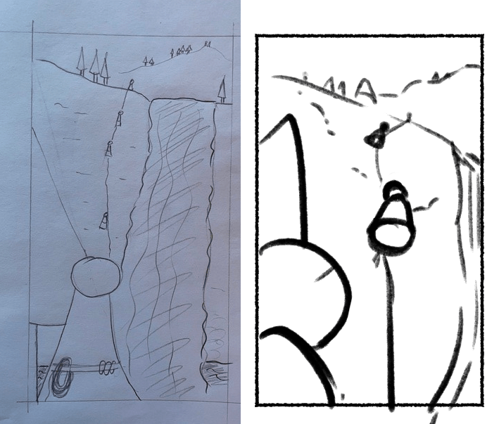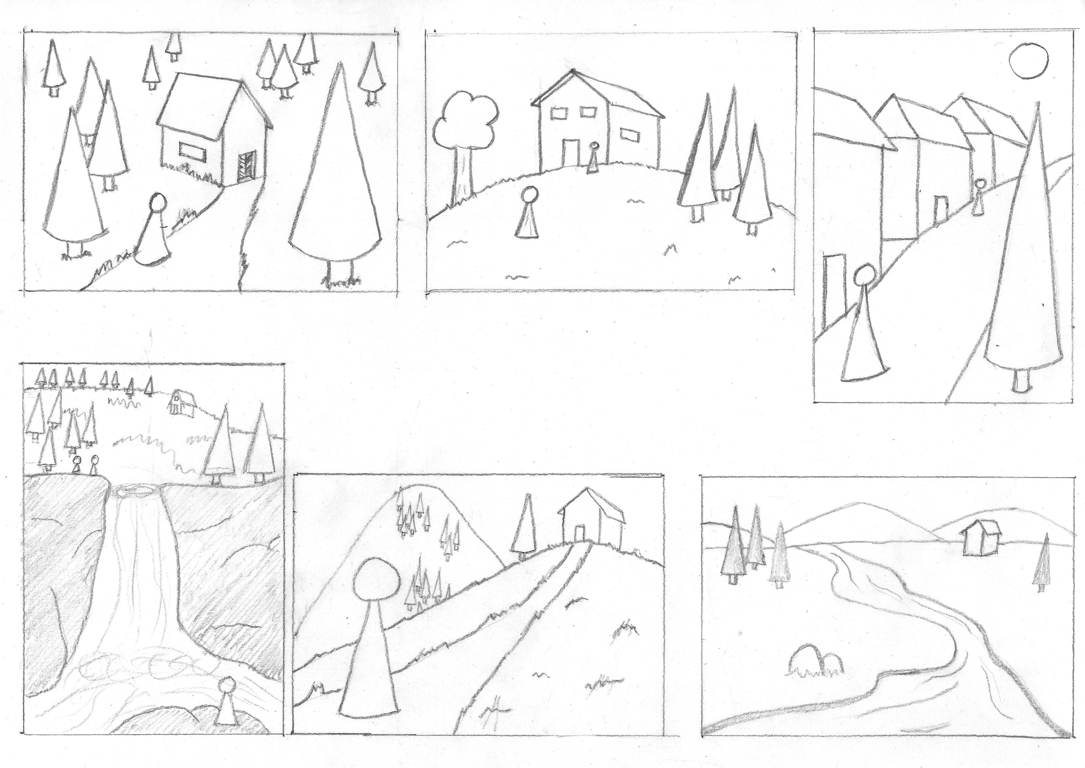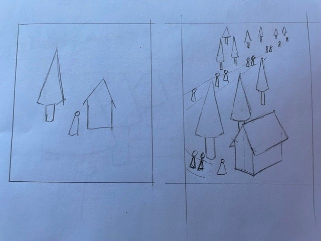 Good evening, here are my sketches. It wasn't easy, it took me some time. However, reflecting on how to stage the drawing reminded me a lot of composing an image in photography.