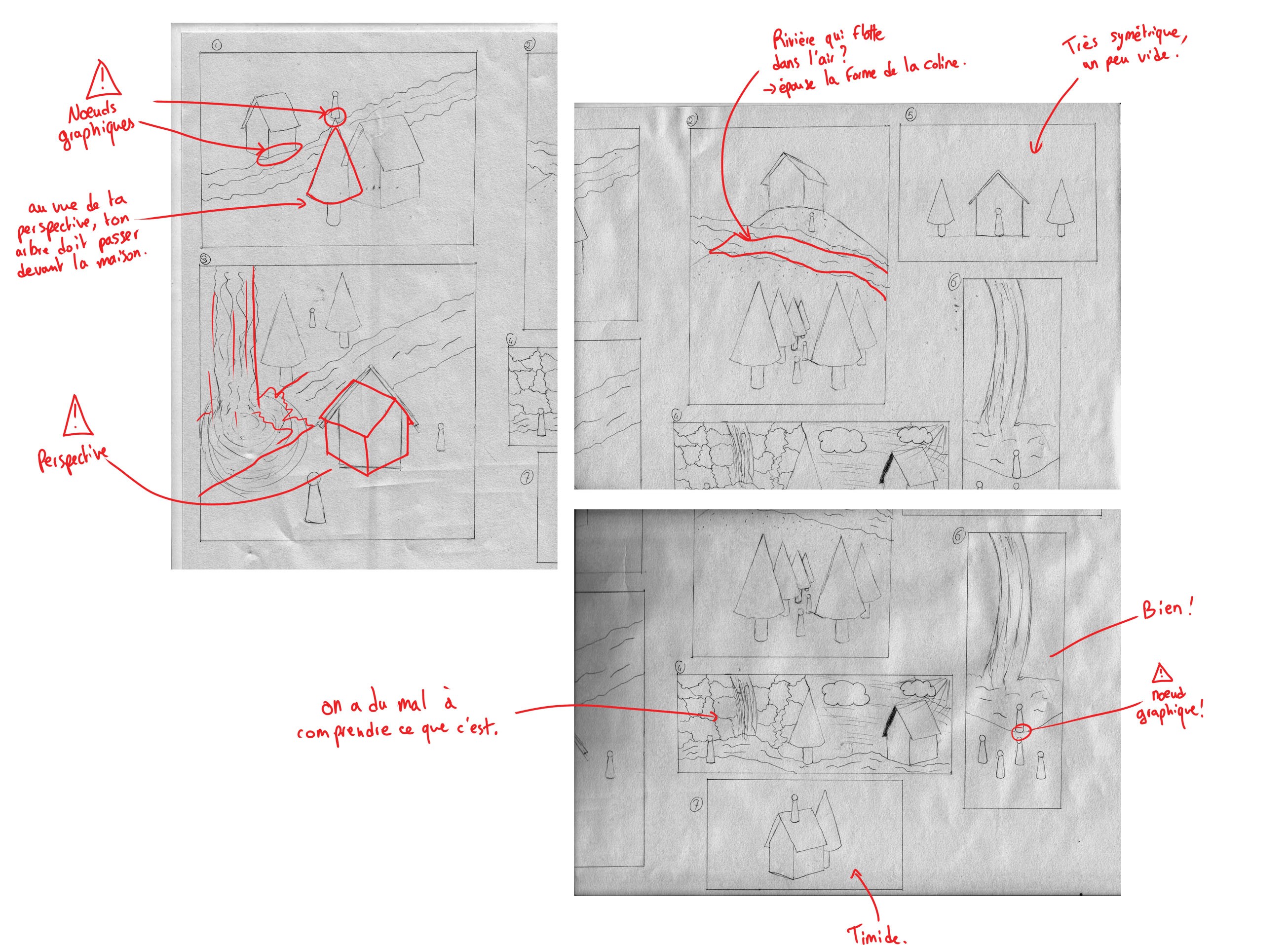 Voici mes dessins de composition . . . avez-vous des commentaires ?