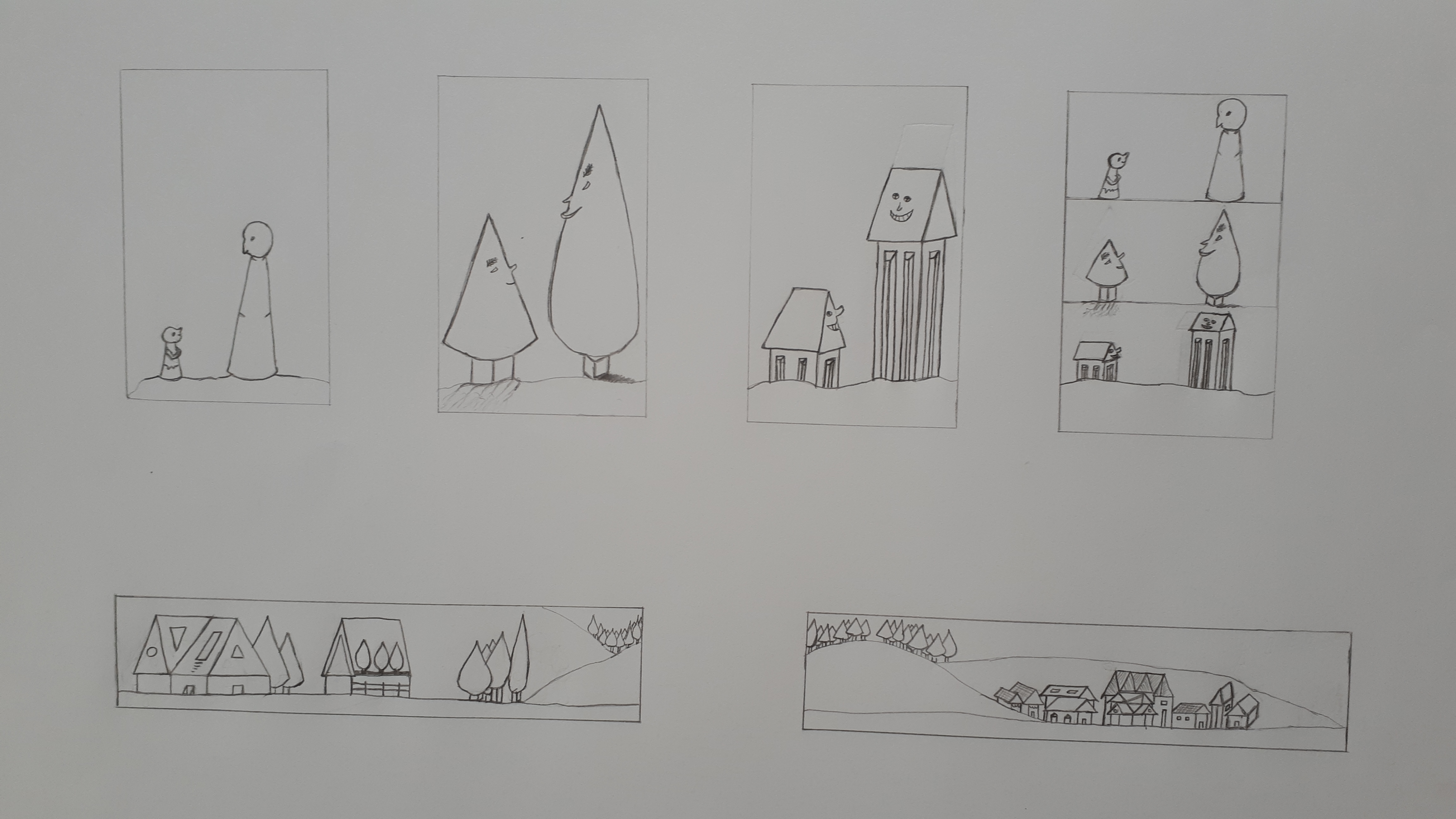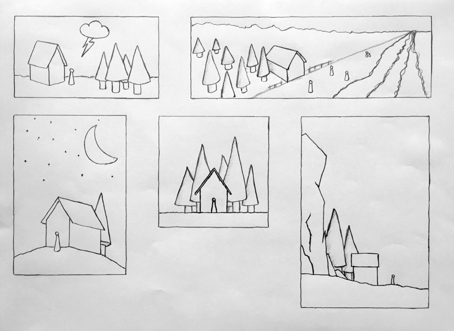 Attention à bien placer ta ligne d'horizon, c'est elle qui va déterminer le sens de ton image et vers quoi vont aller tes éléments, elle va t'aider à construire ton image.