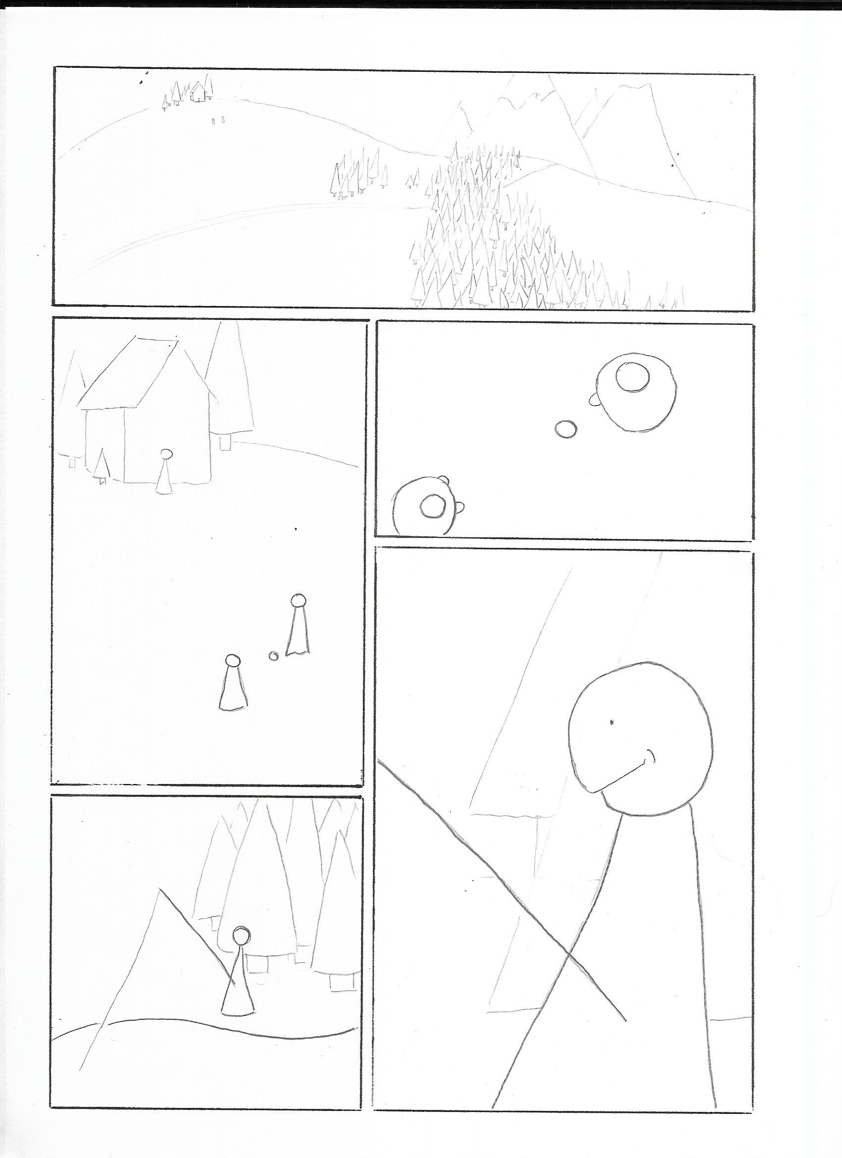 Bonjour Nico22, Tes mises en scènes sont vraiment poussées, j'aime beaucoup la première, avec ces arbres qui donnent de la profondeur, et le placement de la maison et d personnage qui est très lisible. Bravo, globalement c'est vraiment réussi. Voici mes observations dessinées.