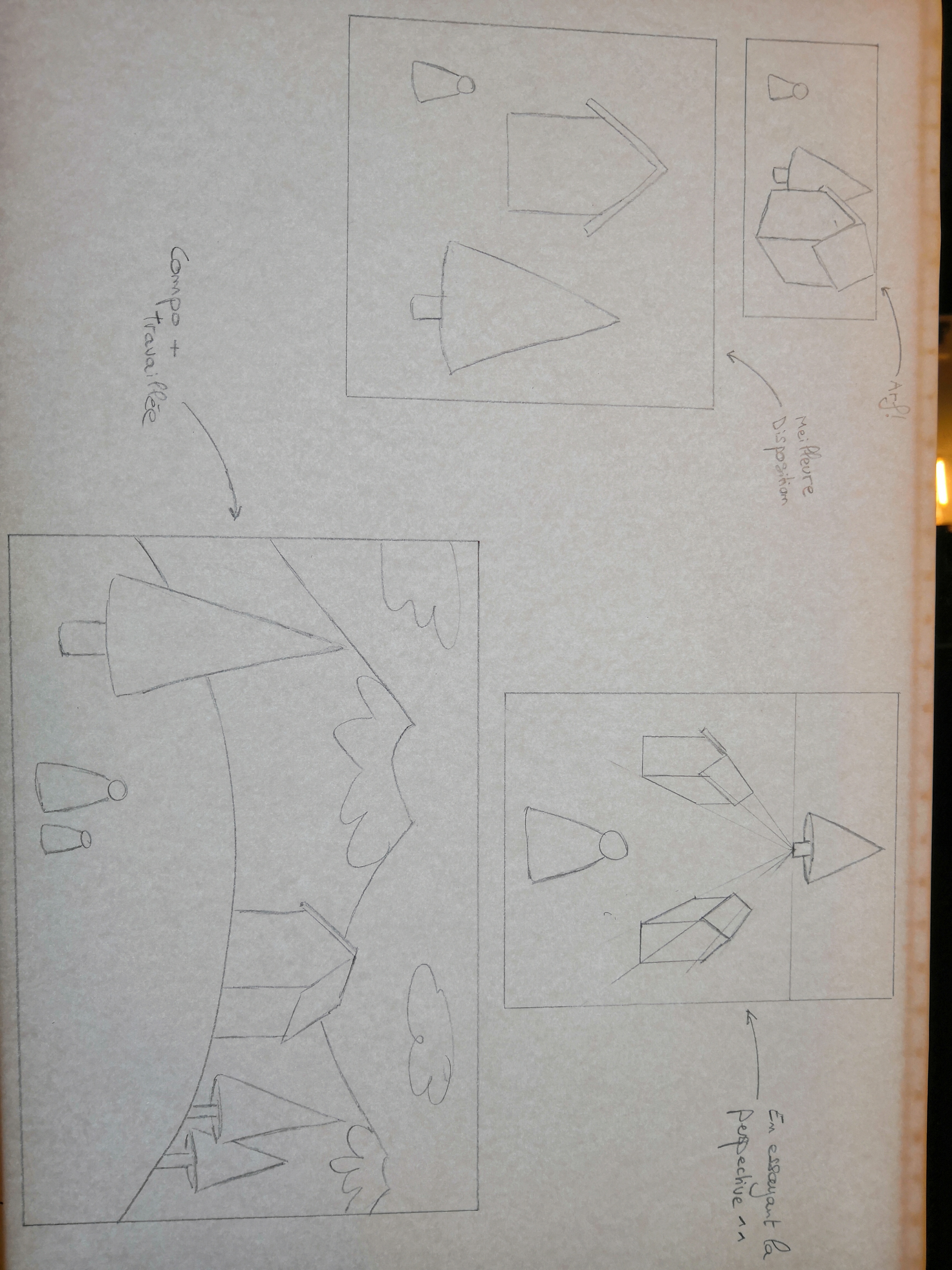 Bonjour An.so, Tu as proposé de bonnes compositions, attention cependant à la perspective de tes objets (maisons et chemins) qui sont fausses pour la plupart. Dessiner la ligne d'horizon t'aidera dans ce sens. N'hésites pas également à placer les éléments importants sur les points chauds de ton image, et de placer des arrière-plans, avant-plans.
