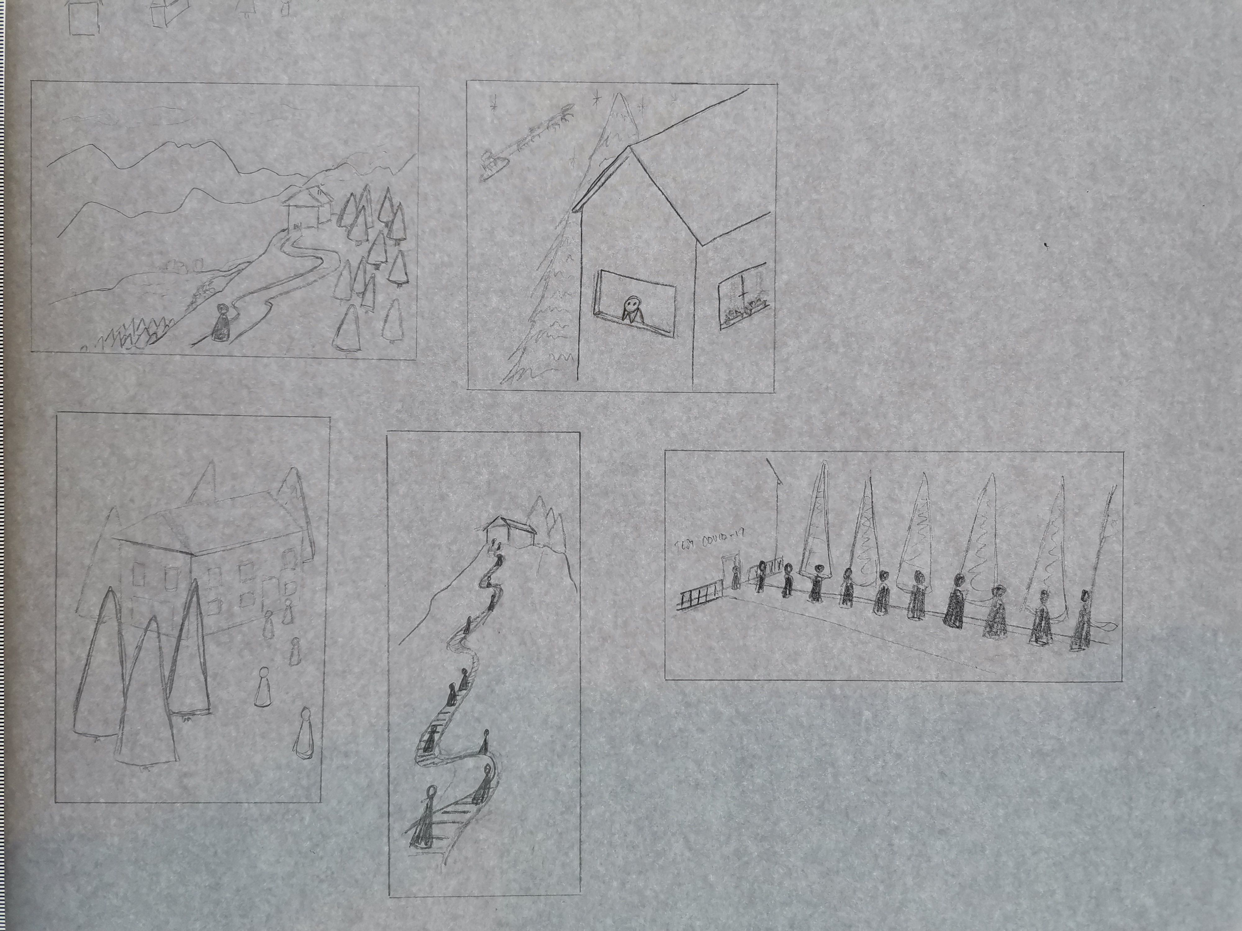 Ton idée de varier le nombre d'éléments et leur taille est vraiment bonne, mais ne servent pas toujours tes compositions. La dernière est notemment très fouillie. Dans une recherche de composition, on essaie de mettre en valeur un récit, quelque chose que l'on veut raconter. La place et la taille des éléments dans l'image doivent servir ce propos.