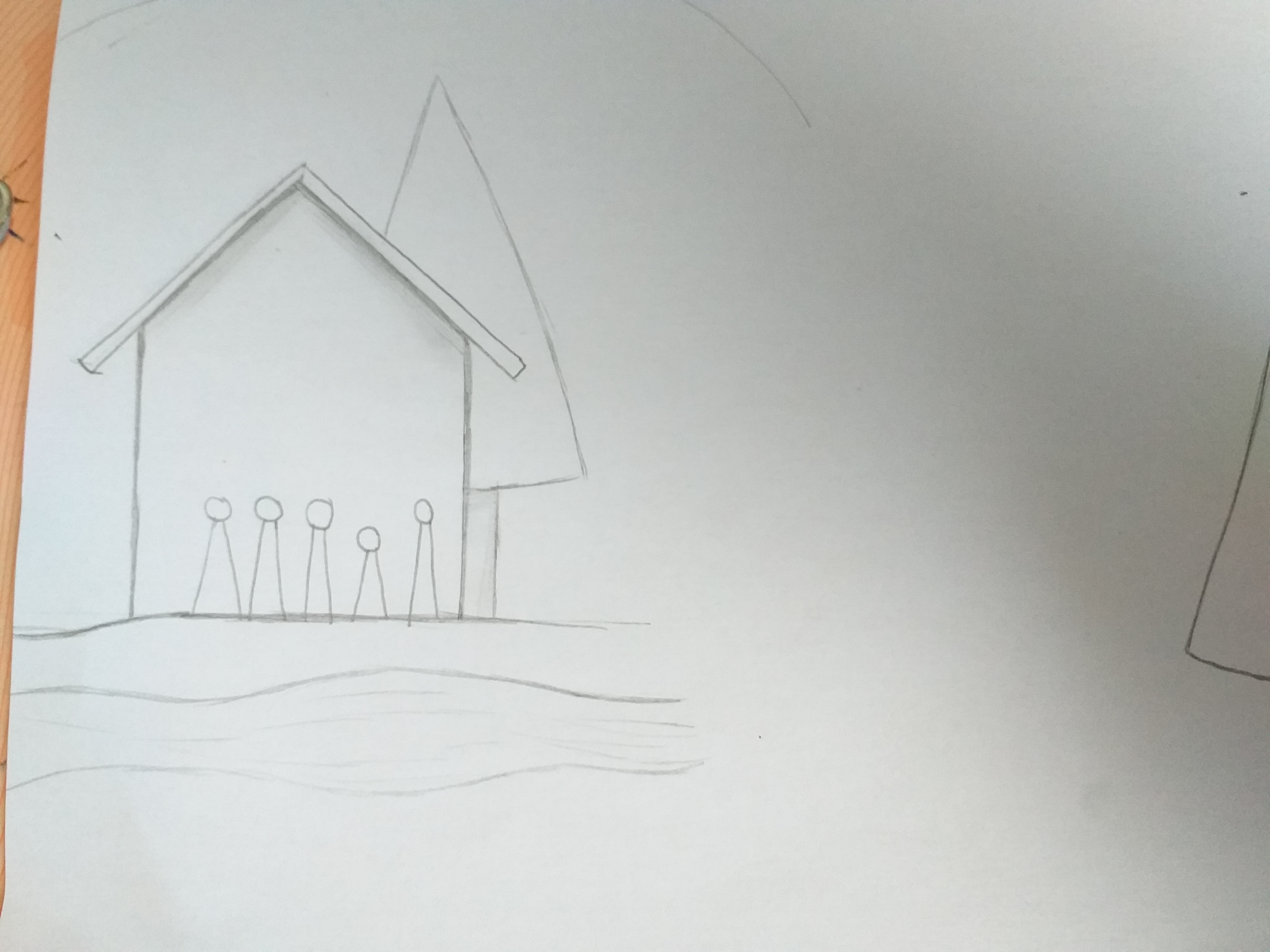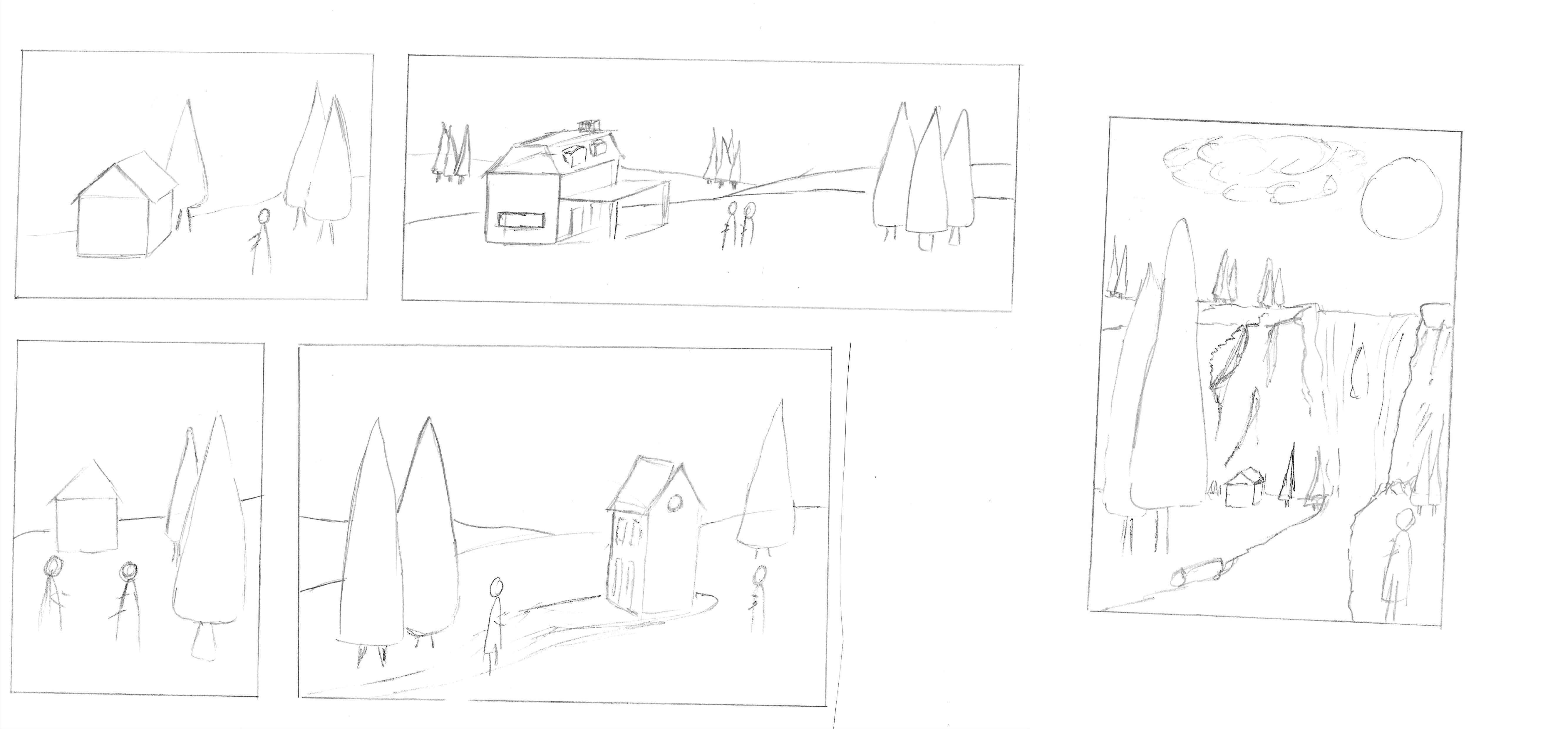 Hello Mysto, Your proposals are very nice! To improve them, I would advise you to always clearly draw your horizon line, or at least a background setting that will give depth to your composition. In your first proposal, you could offset the house to the left for a better reading of the image. Also, pay attention to your perspective (last drawing) and to place your important elements on the hot spots of your image. Otherwise, it's really not bad, well done!