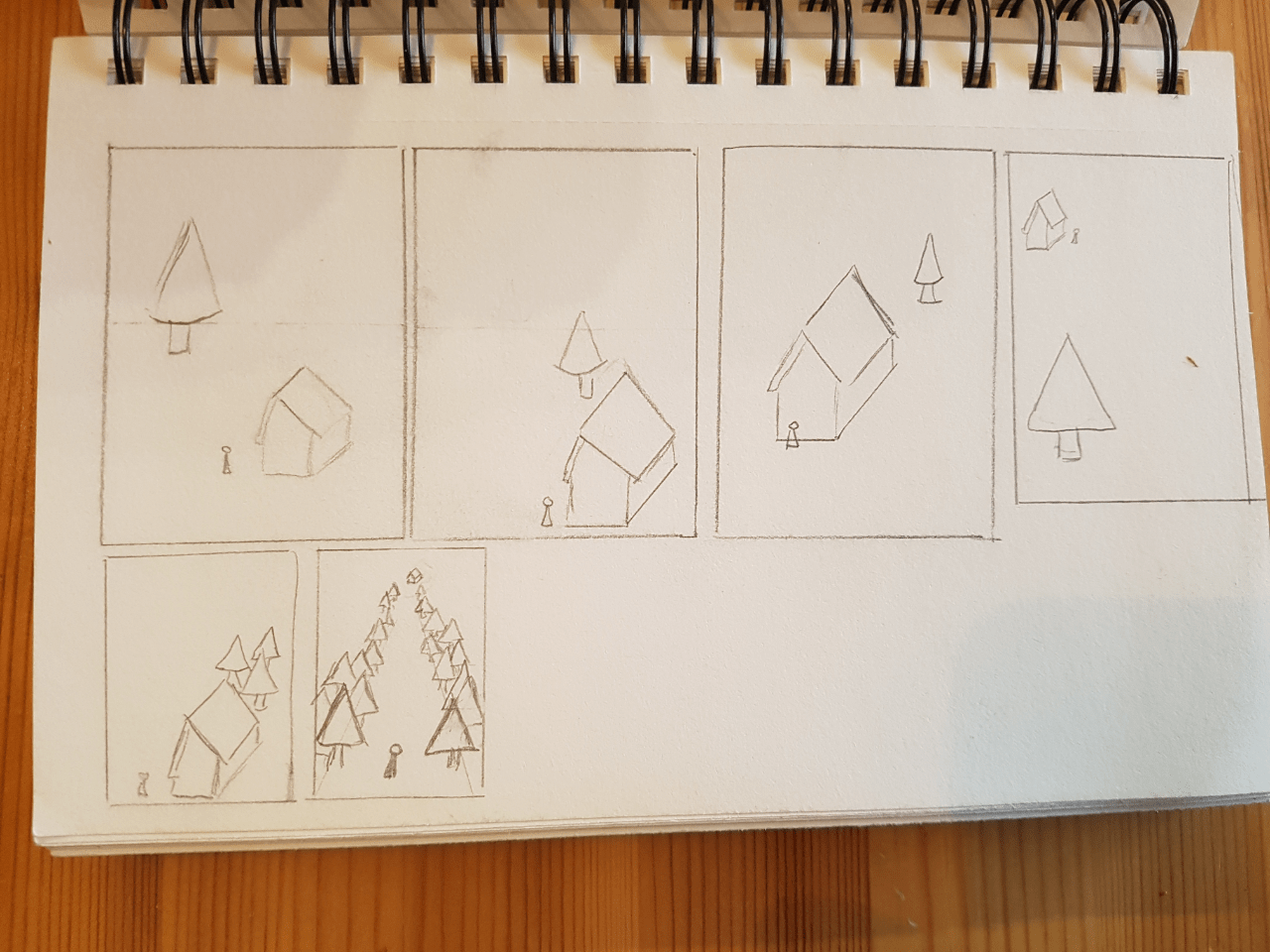 A small piece of advice when you redo the exercise: properly place your horizon line in each frame before placing your elements, try not to leave too much empty space, and create depth by placing foreground and background elements ;)
