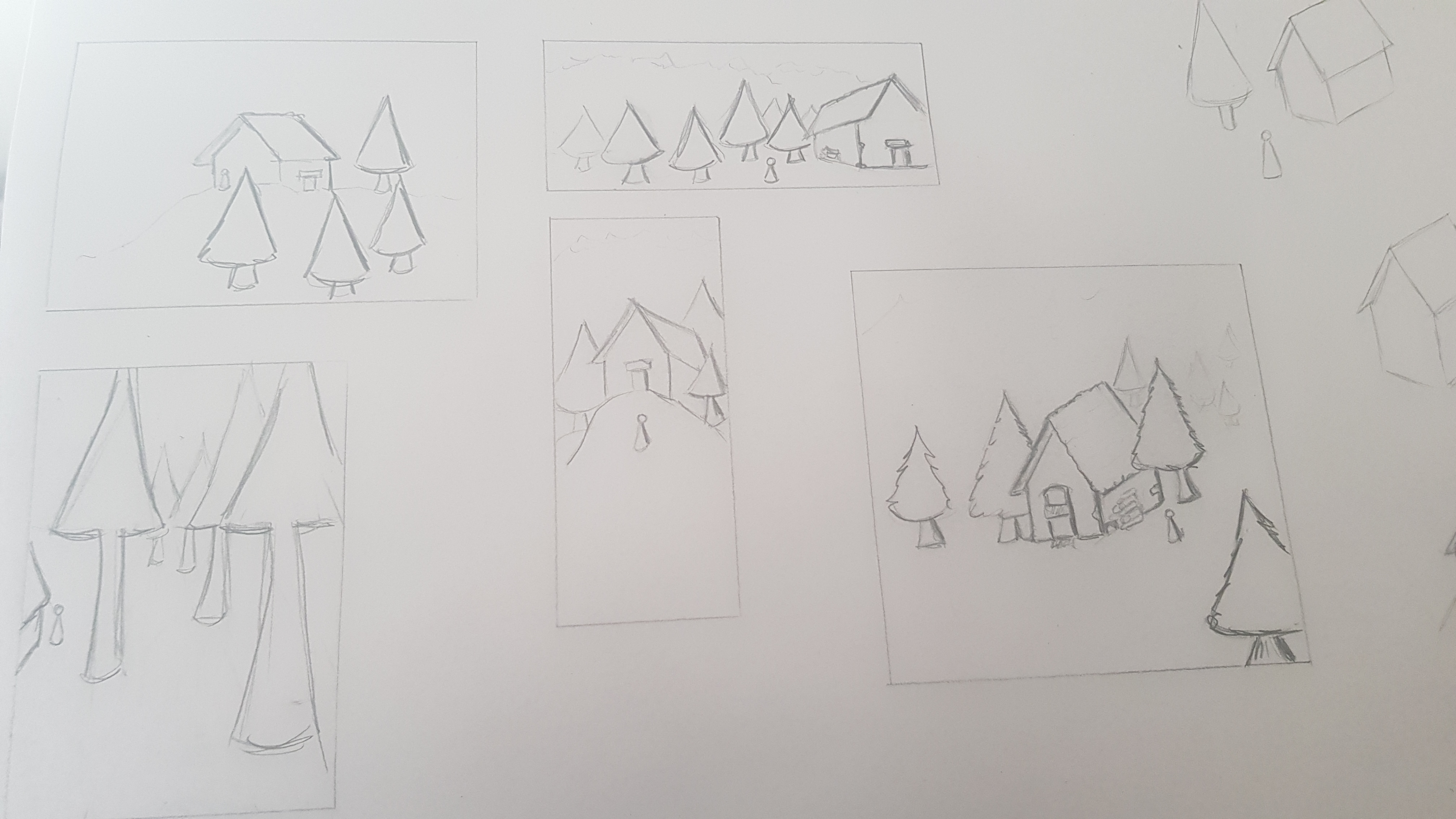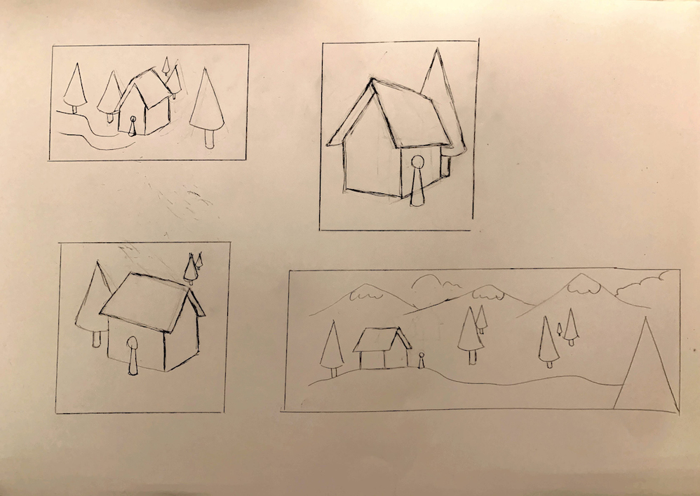 Hello Casha! Nice job on the composition, they are all really successful! I might have placed the small village at the foot of the fir trees (second drawing from the left) differently since it is a bit "squeezed" into the corner of your image. If it's the main subject of your drawing, place it on a hot spot in the image.
