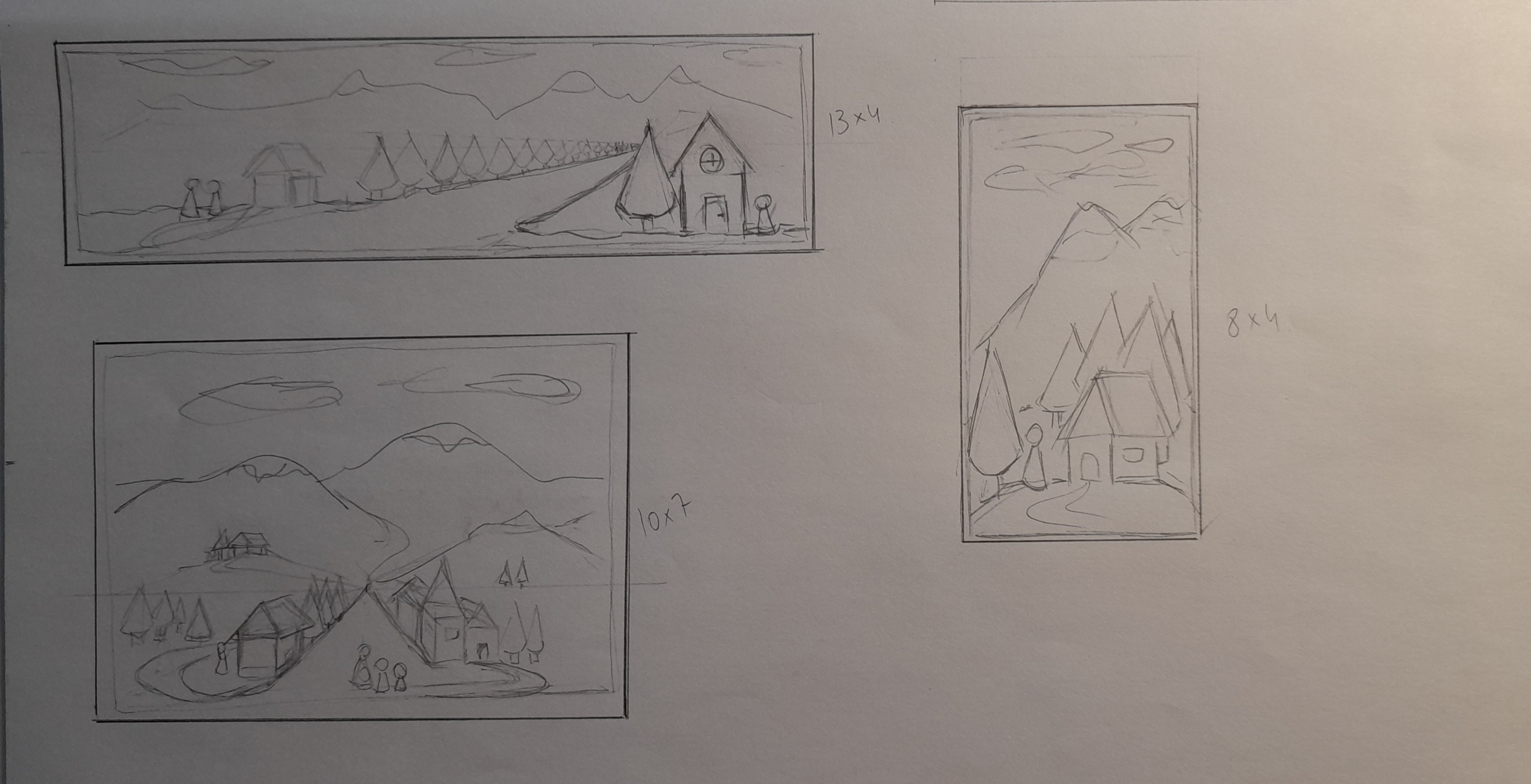 Your sketches are great, just remember to clearly mark your horizon with a line, and to properly include a foreground/background to give depth :)