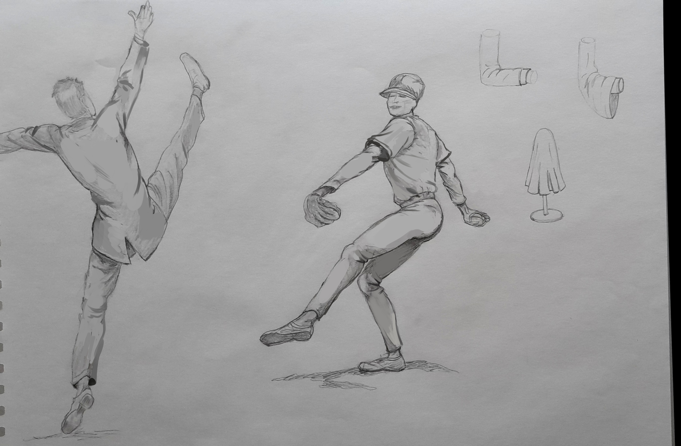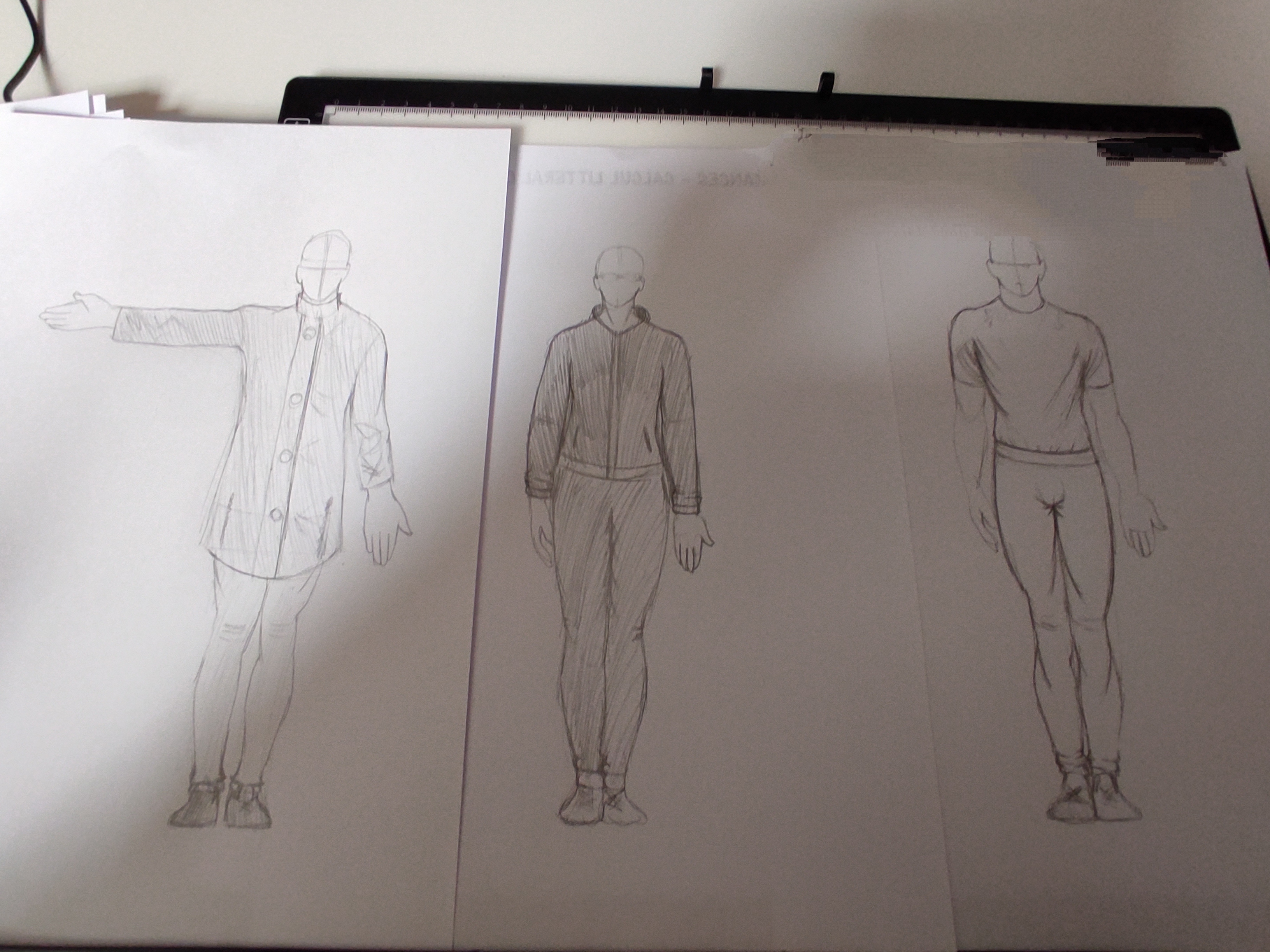 Nice work! It’s well understood, but there are a bit too many folds at places where the inflection points don’t cause that much tension. It’s also good to think about the firmness of the material, a suit isn’t going to bend as much as a silk t-shirt for example, due to its thickness and weight, which smoothes things out a bit. I painted over the drawings. It could also be interesting to see your references if you have any. The little exercise in the corner is understood otherwise :)