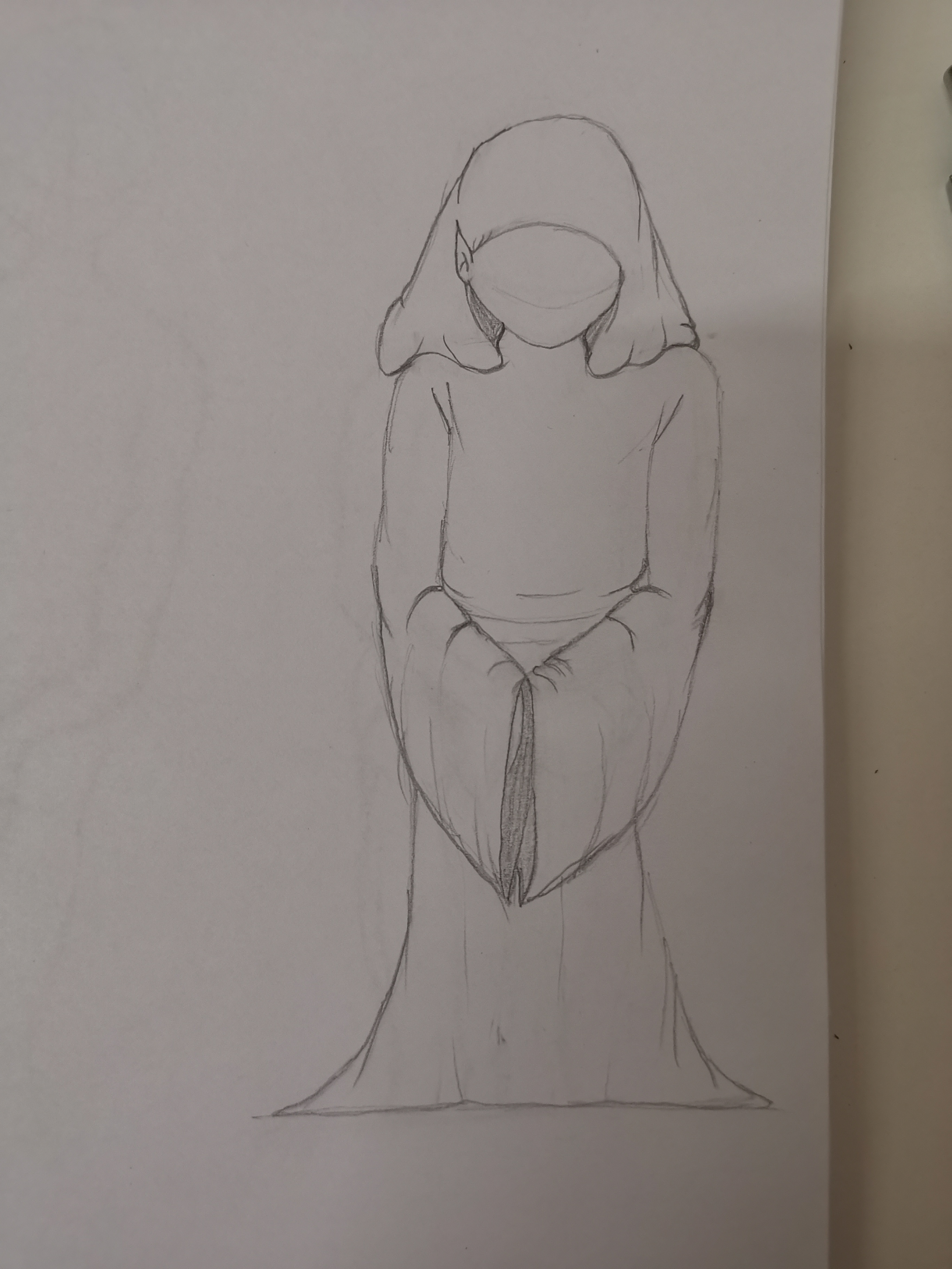 I just want to add that to better see that the character is sitting and doesn't just have overly short legs, I've added the volume of the thighs protruding on the sides ^^
