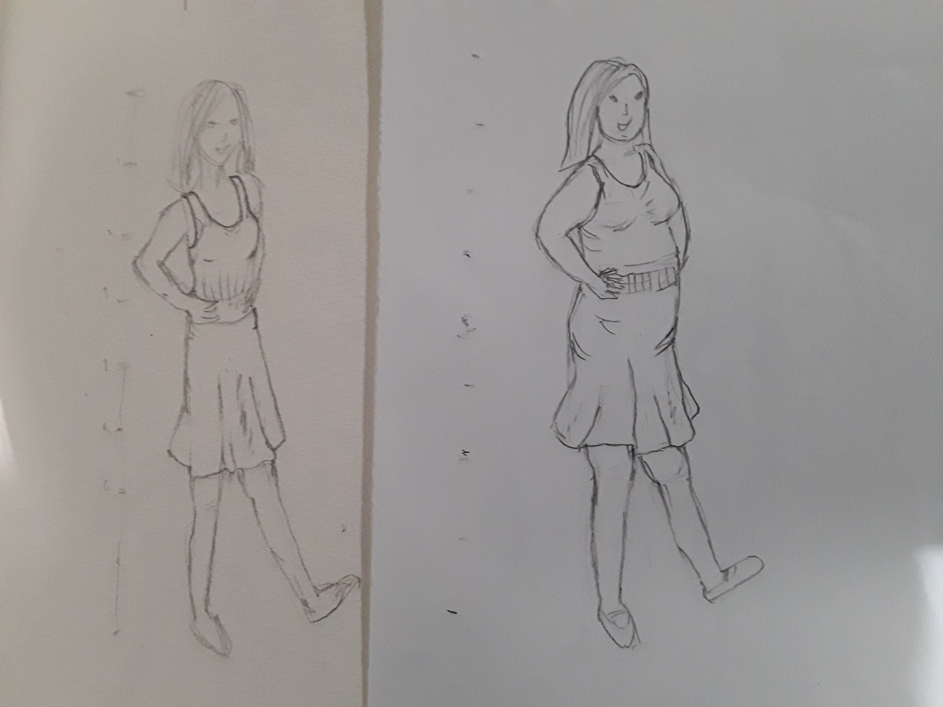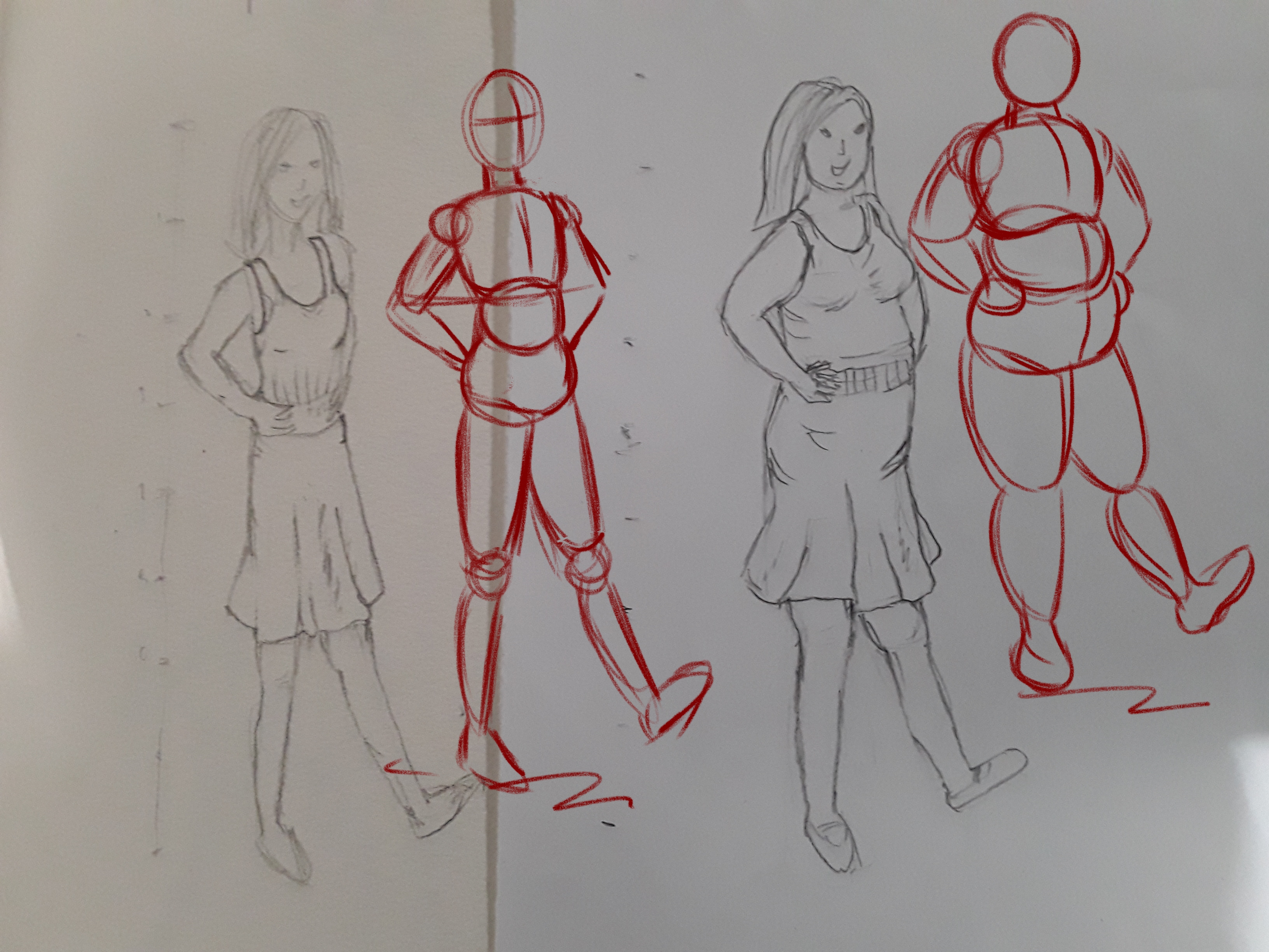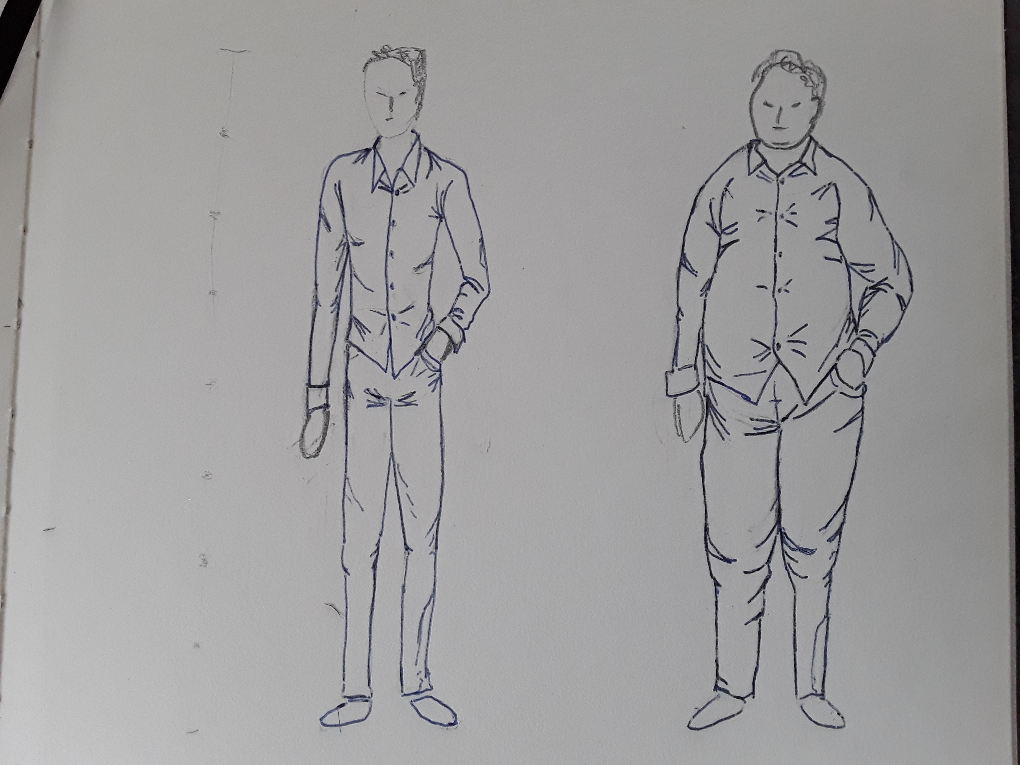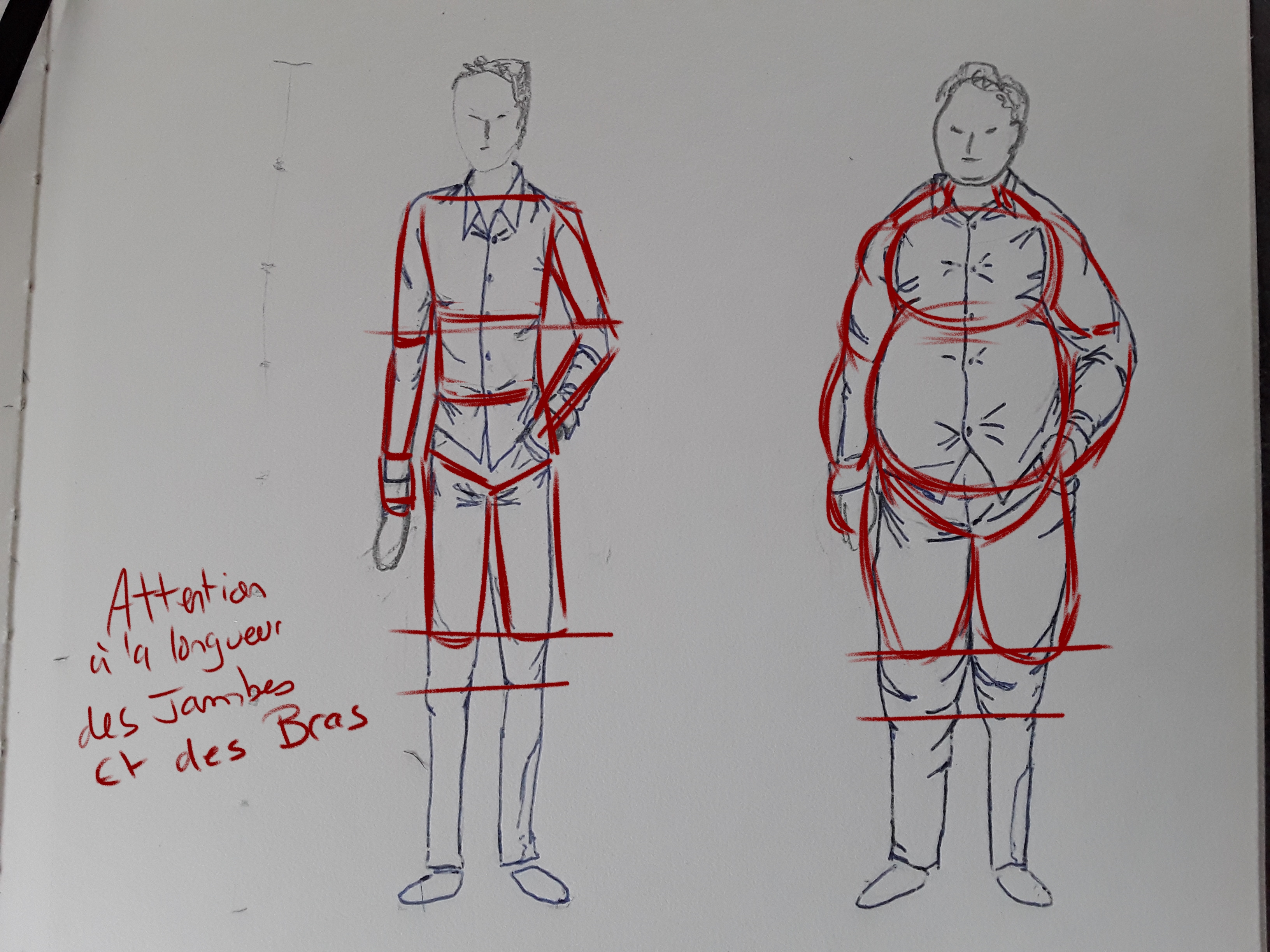 Same comment for the anatomical construction, indeed here we can see that you have overly elongated your characters, particularly in terms of their limbs, and especially the legs. Even for the character with a larger build, who thus has legs that are too long and especially very thin! Watch out for that! ;)