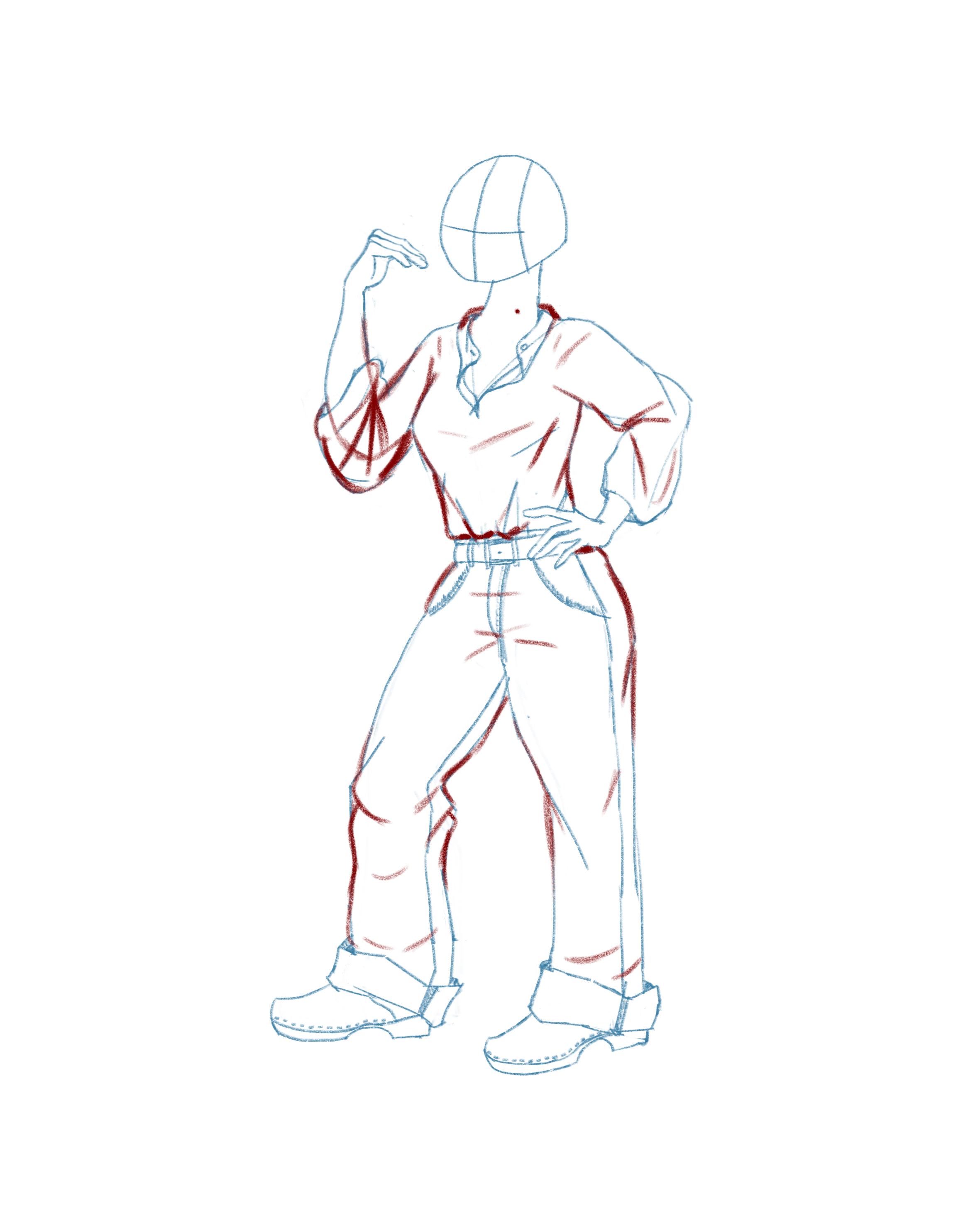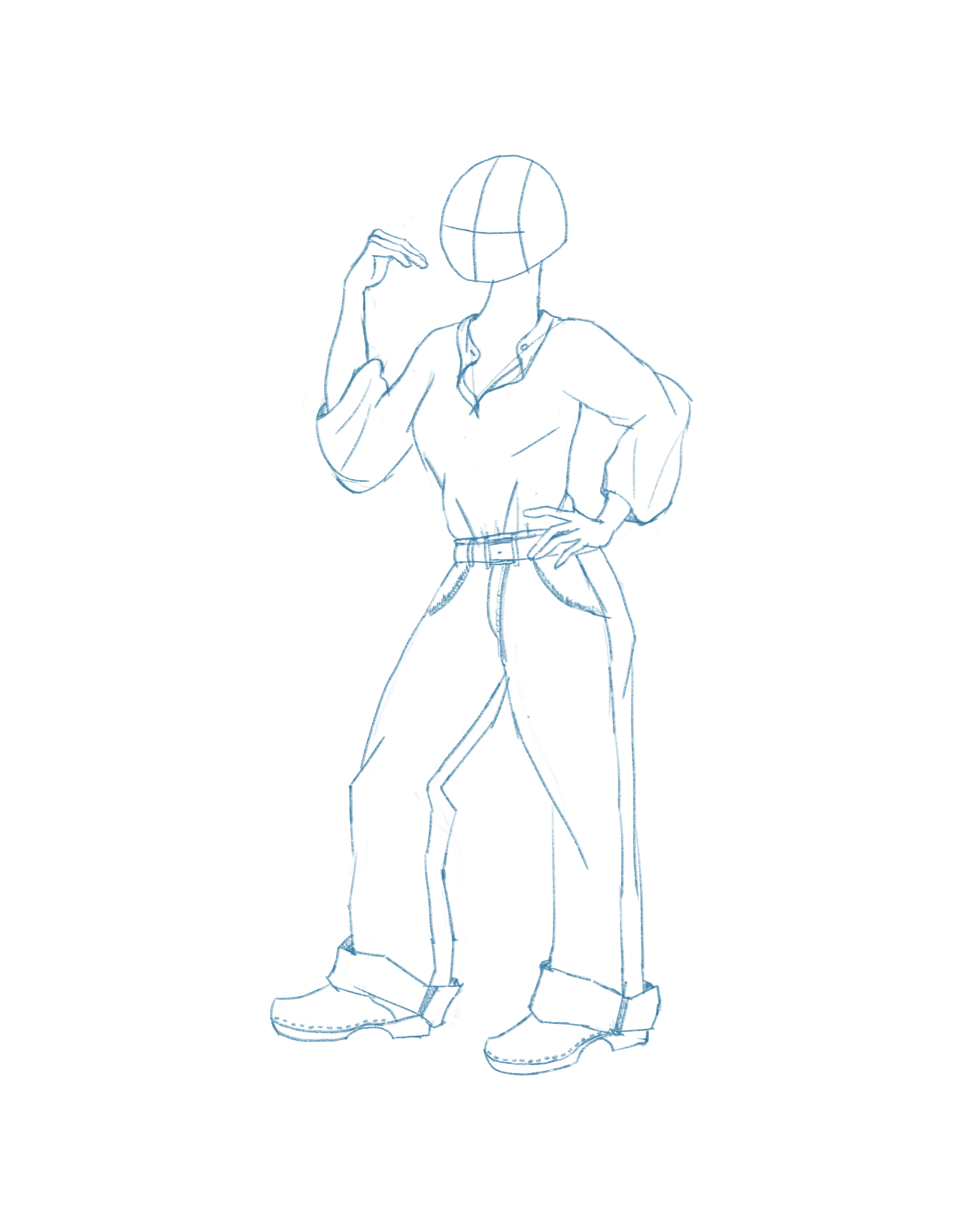 Voici mon essai pour dessiner des vêtements à mon personnage, merci pour vos retours ☺️J'ai essayé de faire une petite blouse un peu fluide et un jean large avec des sabots