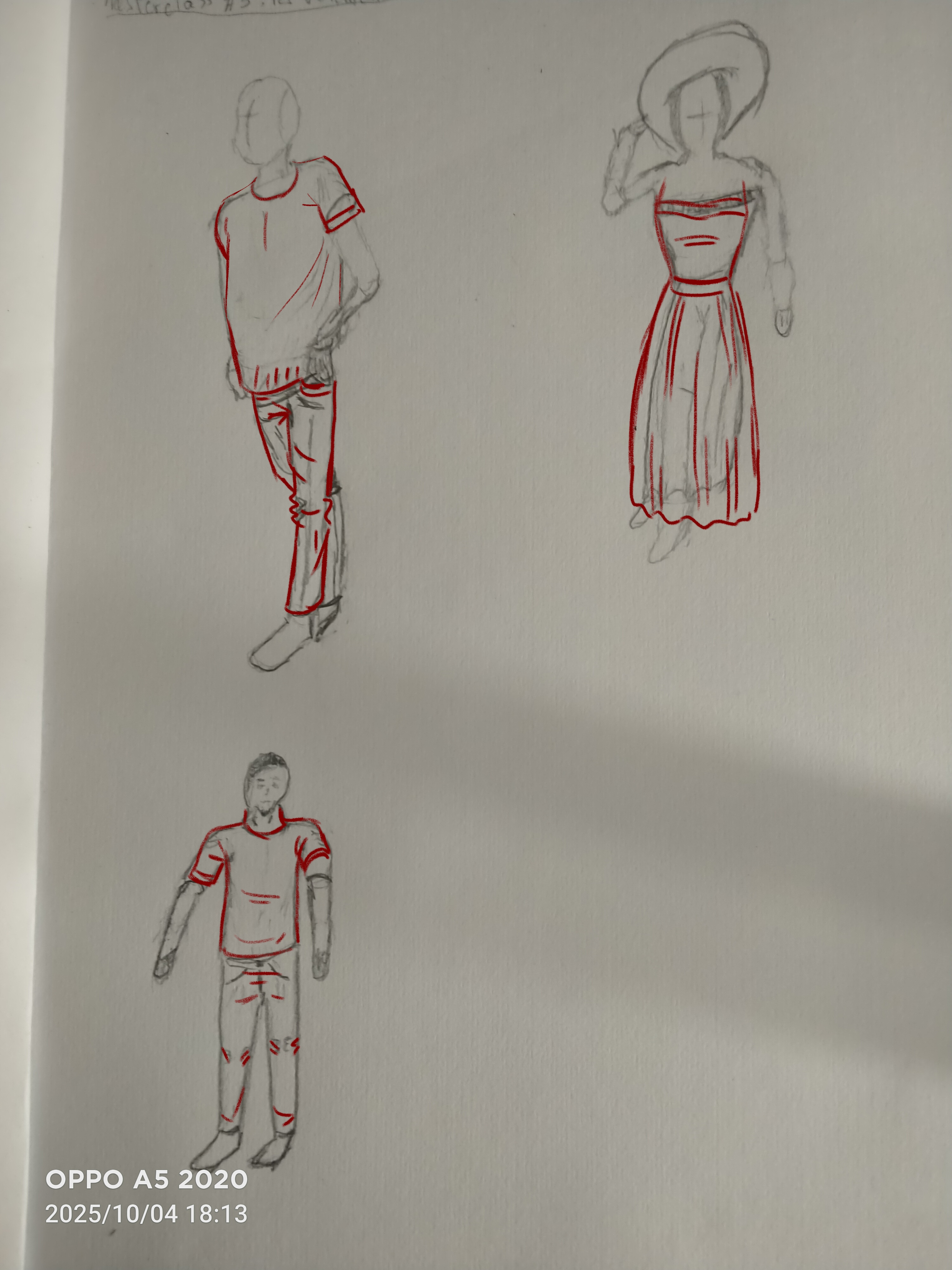 C'est vraiment un très bon exercice ! Faire des études avec de vrais vêtements t'aidera à améliorer ta façon de les comprendre pour donner une touche plus réelle à tes dessins. Si tu as l'image de référence, cela nous aiderait beaucoup à observer les détails, mais à première vue, ça a l'air très bien. Maintenant, je t'invite à réaliser l'exercice avec des vêtements et des personnes qui les portent.