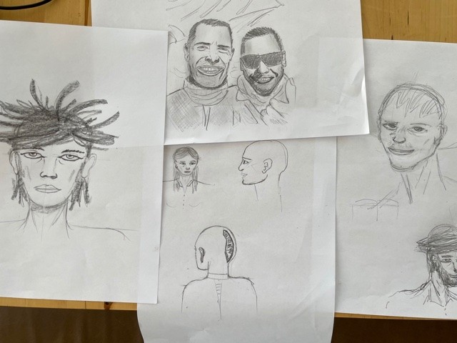 voici quelques essais. Je me rend compte que le visage est difficile à dessiner. j'ai, je crois, surtout de la peine avec les nez.