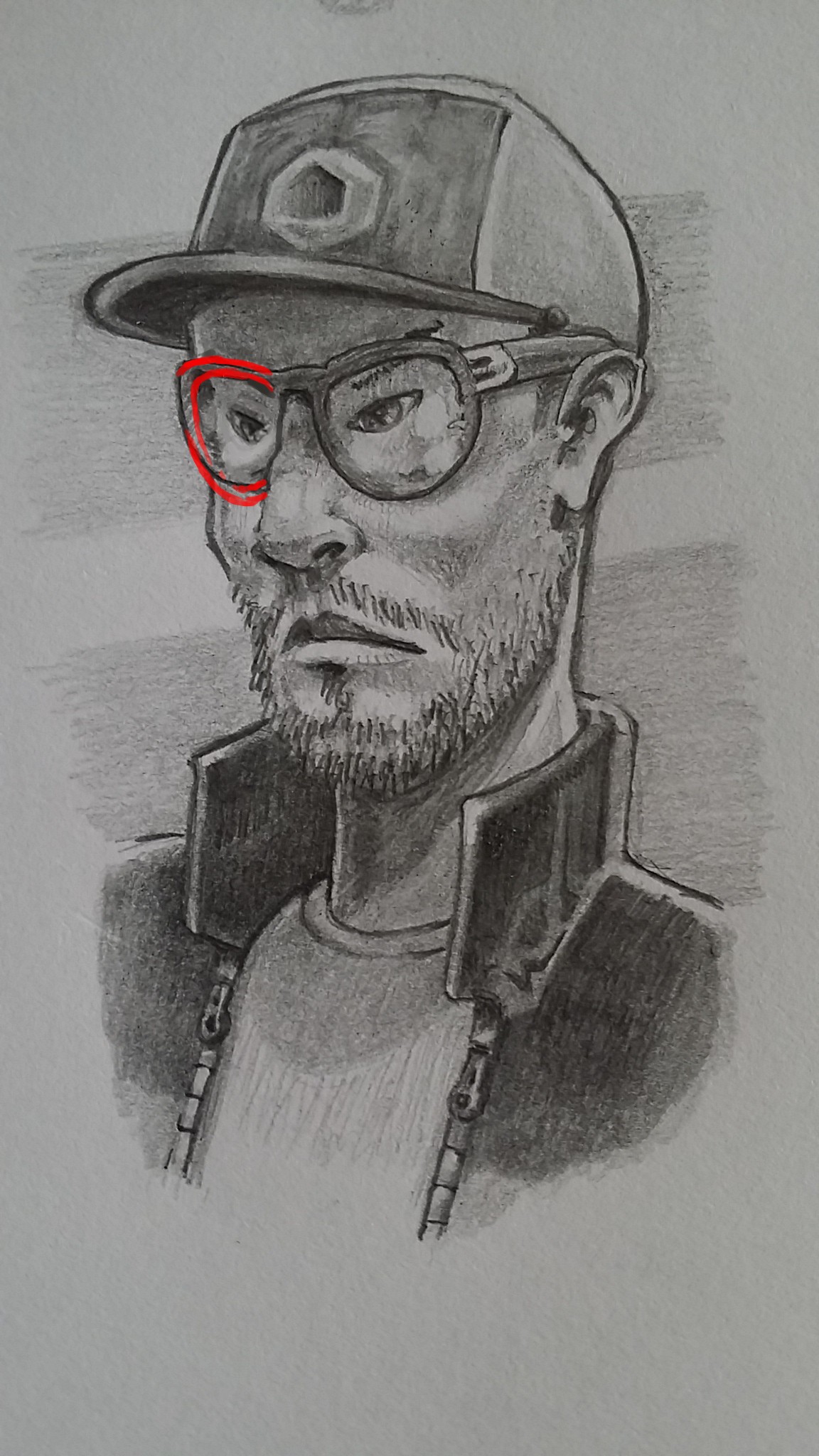 Ta modif au niveau du contour des lunettes est plus logique que ce que j'ai dessiné. je n'avais pas besoin d'amplifier autant la perspective. Tu as un œil bien acéré. merci.