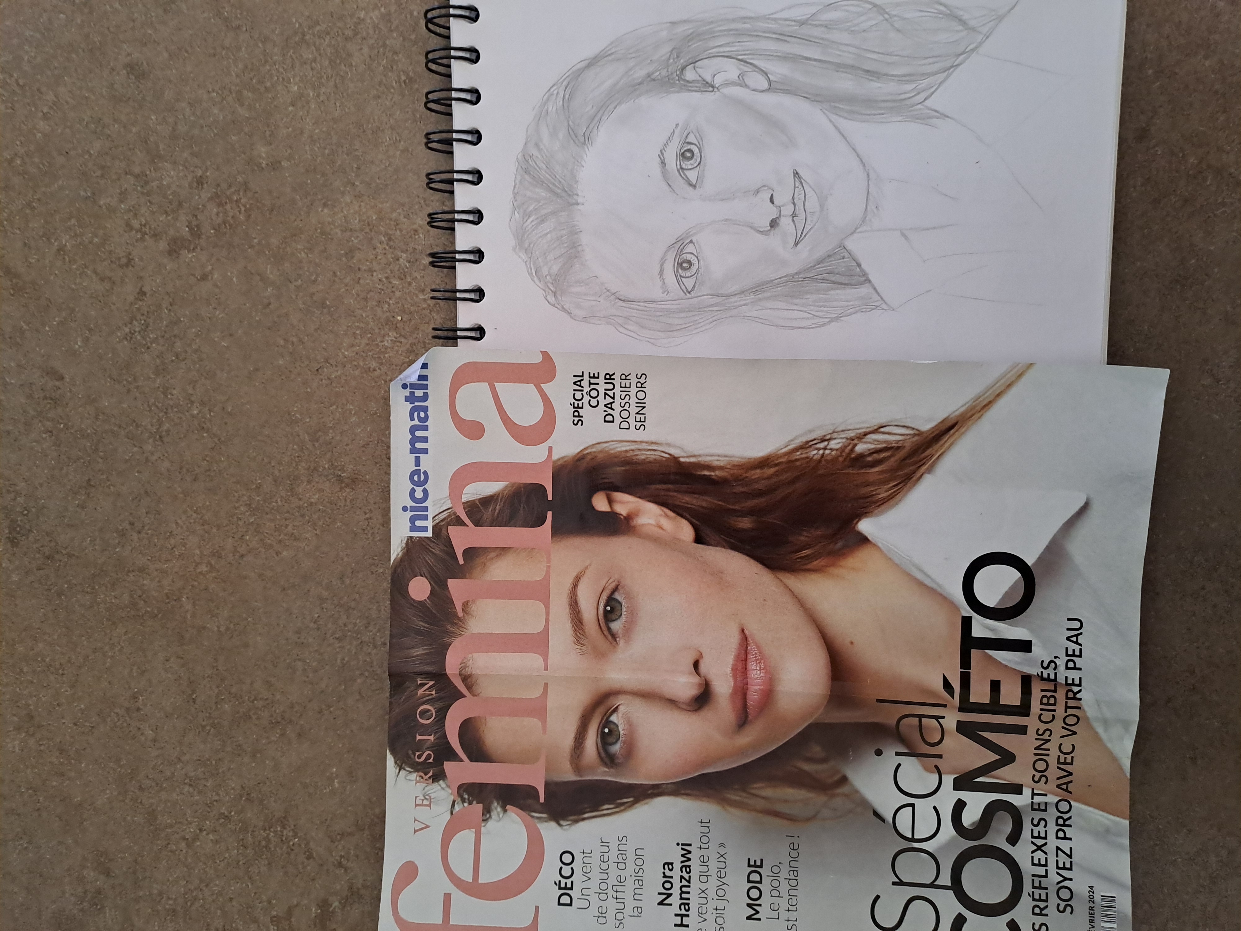 Hello Dodo07081, well it’s really good work I think! Indeed, the front and profile views are the “easiest” to approach, because they are “flat” views. The three-quarter view brings perspective to the face, and this is what can be confusing in the construction of the latter: the eyes are no longer centered and are no longer quite the same size (there is one a little closer to the observer than the other, which is sometimes slightly hidden by the bridge of the nose, the latter itself no longer being in the center of the face) In short, lots of small adjustments to tame, but you look very good get out of it! Afterwards, I suppose that here too, you work from photos, and there I cannot judge the resemblance with the model. But when it comes to facial balance, you're not missing much! Pay attention to the distance and proportions of the eyes. Always move the nose slightly towards the outside of the face, and be careful that the mouth is not too low and close to the chin, it will rather tend, depending on the angle, to come closer to the nose, or even to be hidden from it! In any case, it's really great! :)