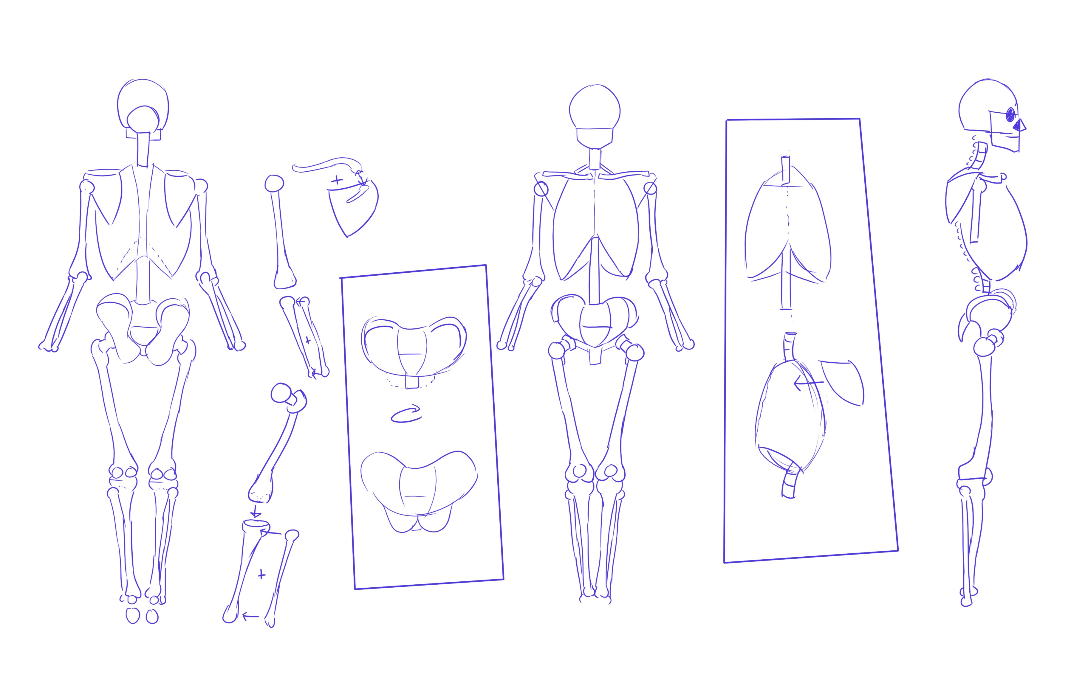 I'm sending you my skeletons. I needed to work on the skeletons of the hands and feet because I sometimes have trouble reproducing them.