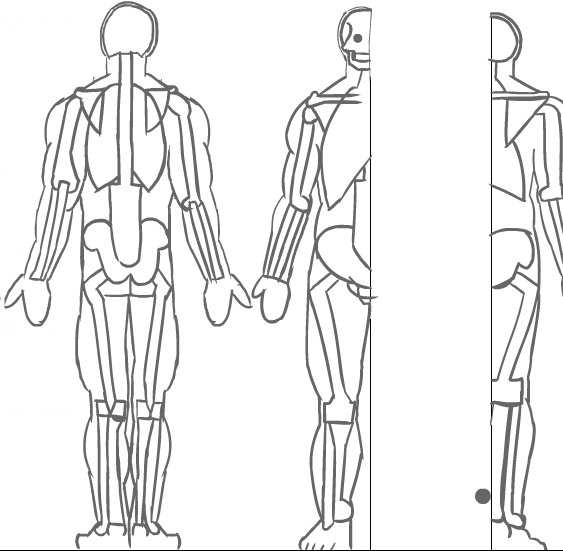 Pour ce qui est de ton parallèle face et dos c'est bien, mais vu que les deux parties sont séparées tu as pas mal élargi ton personnage. Attention à tes correspondances, tes articulations des codes et genoux ne sont pas à la même hauteur.