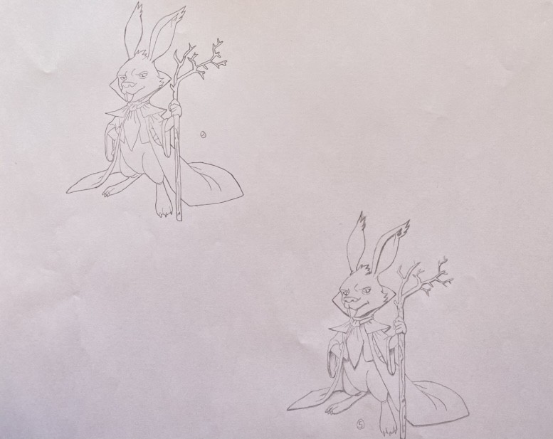 sheet 1: silhouette of the rabbit's body, outer silhouette, stick.