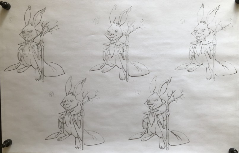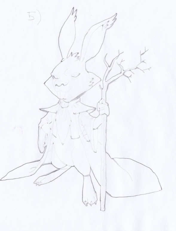 Hello, here are my 5 rabbits, the 1st (I put the numbers in the top left of the drawings!) with the strongest silhouette, the 2nd with the stronger bottom features, the 3rd with stronger angles than curves, the 4th with "shadows" and the 5th with everything combined (the silhouette, the bottom features, the angles, and the "shadows")!!! 😁
